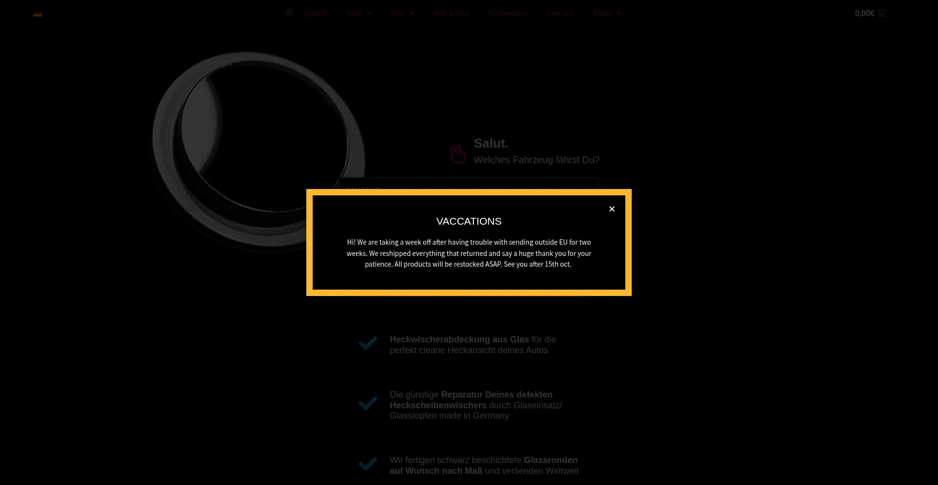 Wir sind die Erfinder der Heckwischerabdeckung und liefern seit 2007 weltweit wiper delete Glasstopfen für Audi, VW, Seat, Renault und viele weitere Marken.