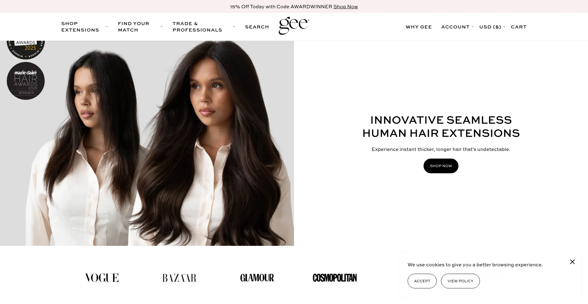 The website implements cookie consent mechanisms in compliance with privacy regulations such as GDPR or CCPA. This demonstrates that geehair.com adheres to data protection standards and provides users with control over personal data collection practices.