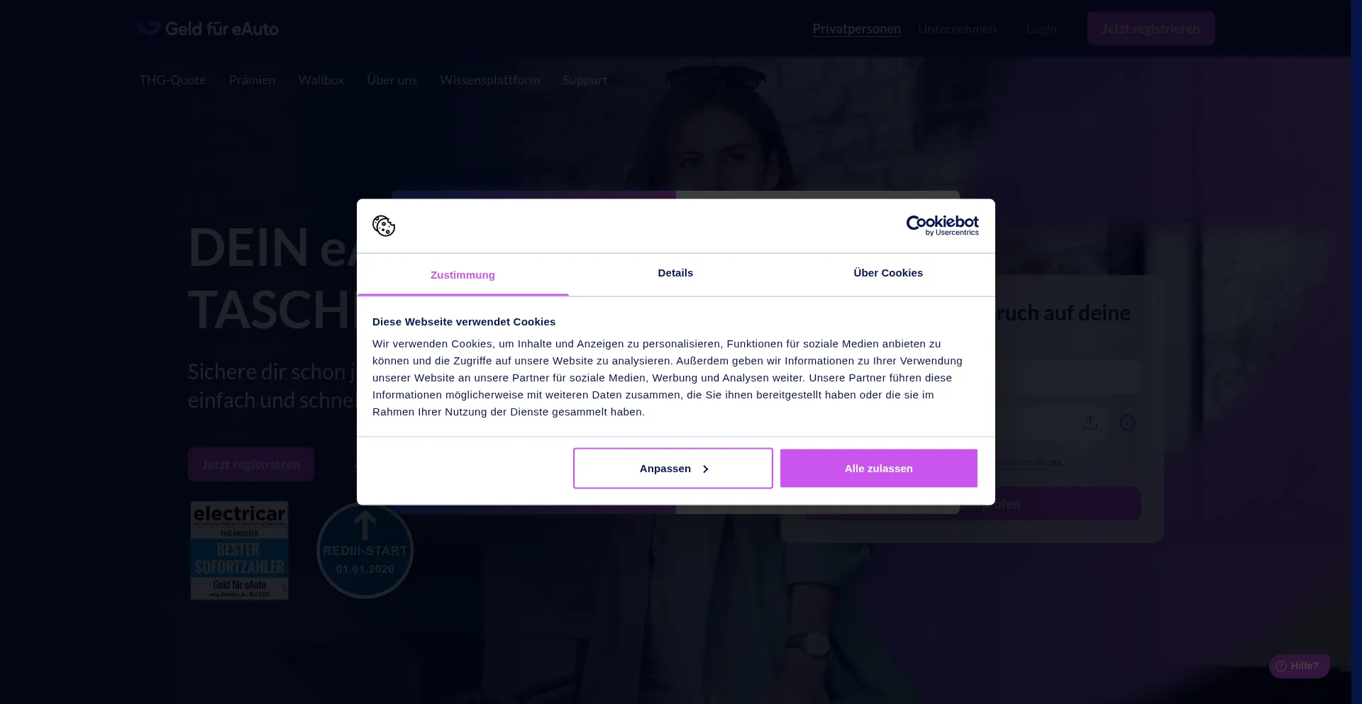 The website implements cookie consent mechanisms in compliance with privacy regulations such as GDPR or CCPA. This demonstrates that geld-fuer-eauto.de adheres to data protection standards and provides users with control over personal data collection practices.