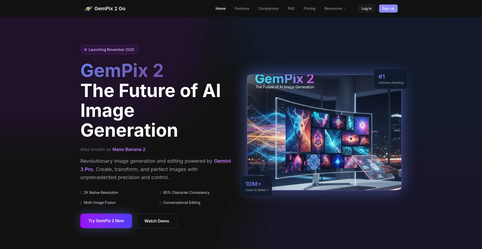 GemPix 2 (Nano Banana 2): Revolutionary AI image generation and editing powered by Google's Gemini 3 Pro. 2K native resolution, 4K upscaling, 95% character consistency, and on-d...