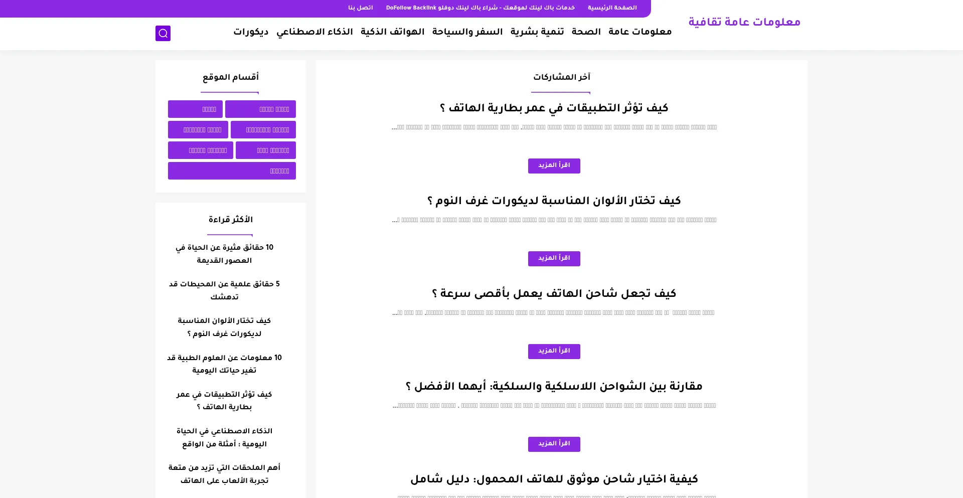 اكتشف معلومات عامة ثقافية وعلمية متنوعة، حقائق مدهشة ونصائح تساعدك على تطوير معرفتك وفهم العالم ...