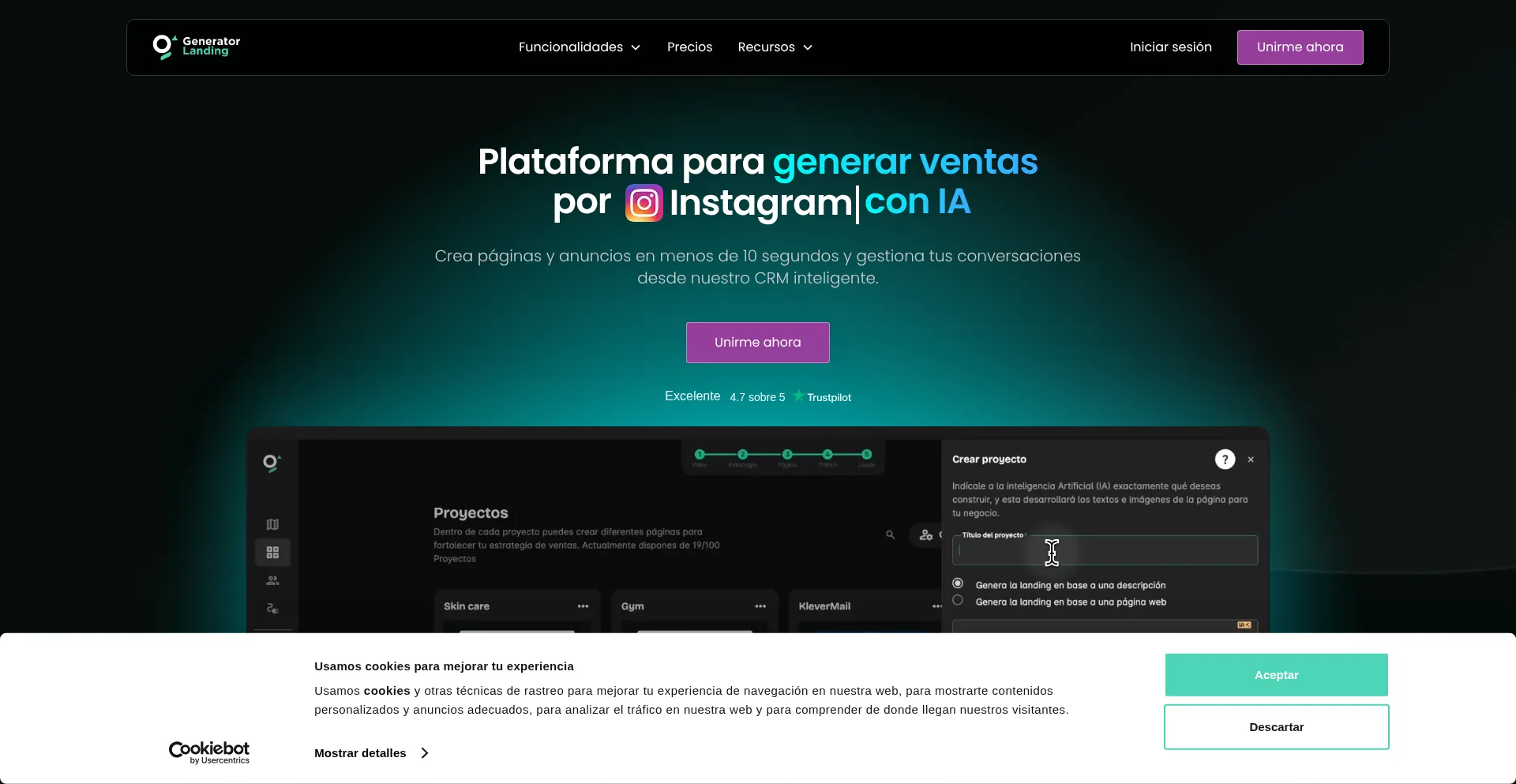 Generator Landing - Plataforma para generar ventas por Whatsapp, Instagram y Messenger