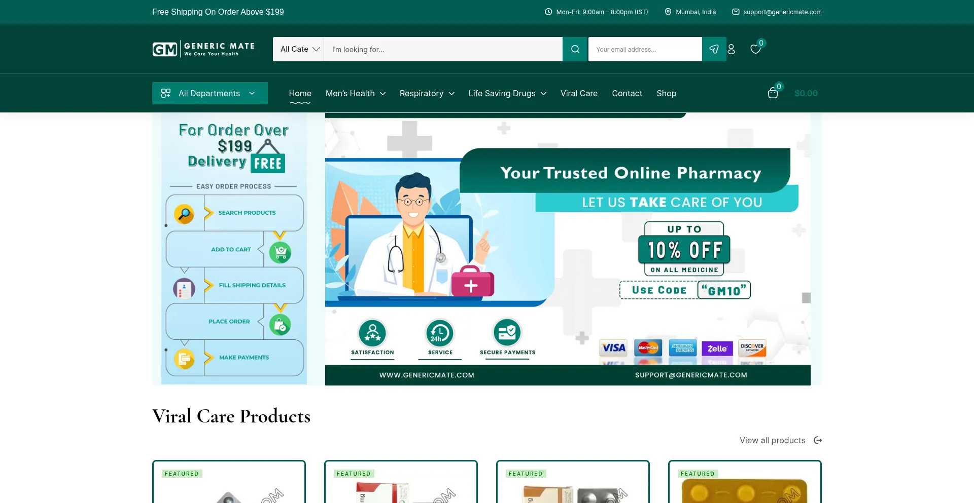 Analysis indicates that genericmate.com operates as an e-commerce platform facilitating online transactions for goods or services. The website implements shopping cart functionality, payment processing systems, and product catalog features typical of commercial retail operations.