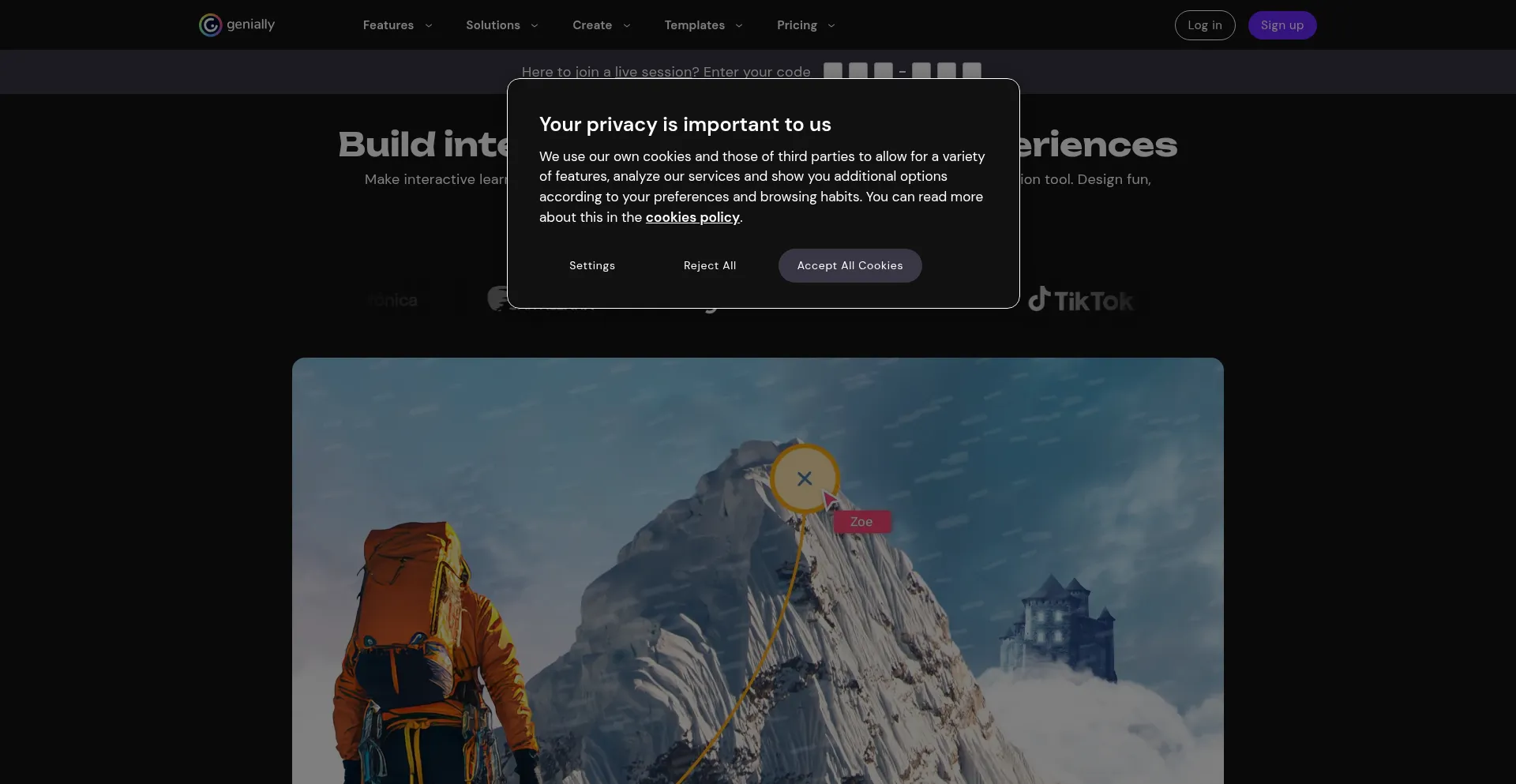 The website implements cookie consent mechanisms in compliance with privacy regulations such as GDPR or CCPA. This demonstrates that genial.ly adheres to data protection standards and provides users with control over personal data collection practices.