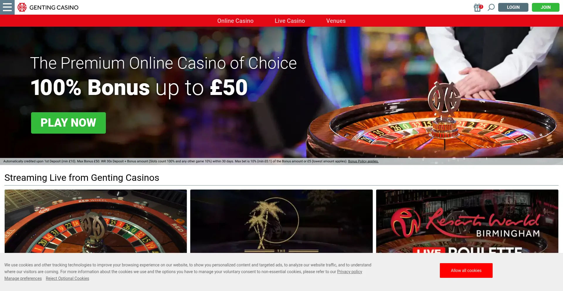 Play over 6,000 online casino games and premium live roulette tables streamed from Genting Clubs anywhere and only any device. Join Now. 18+. Play Responsibly.