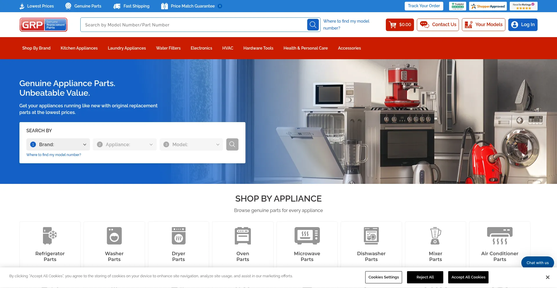 Genuine Replacement Parts stocks OEM parts from top manufacturers. Use model-based search and diagrams to find exactly what fits your repair.