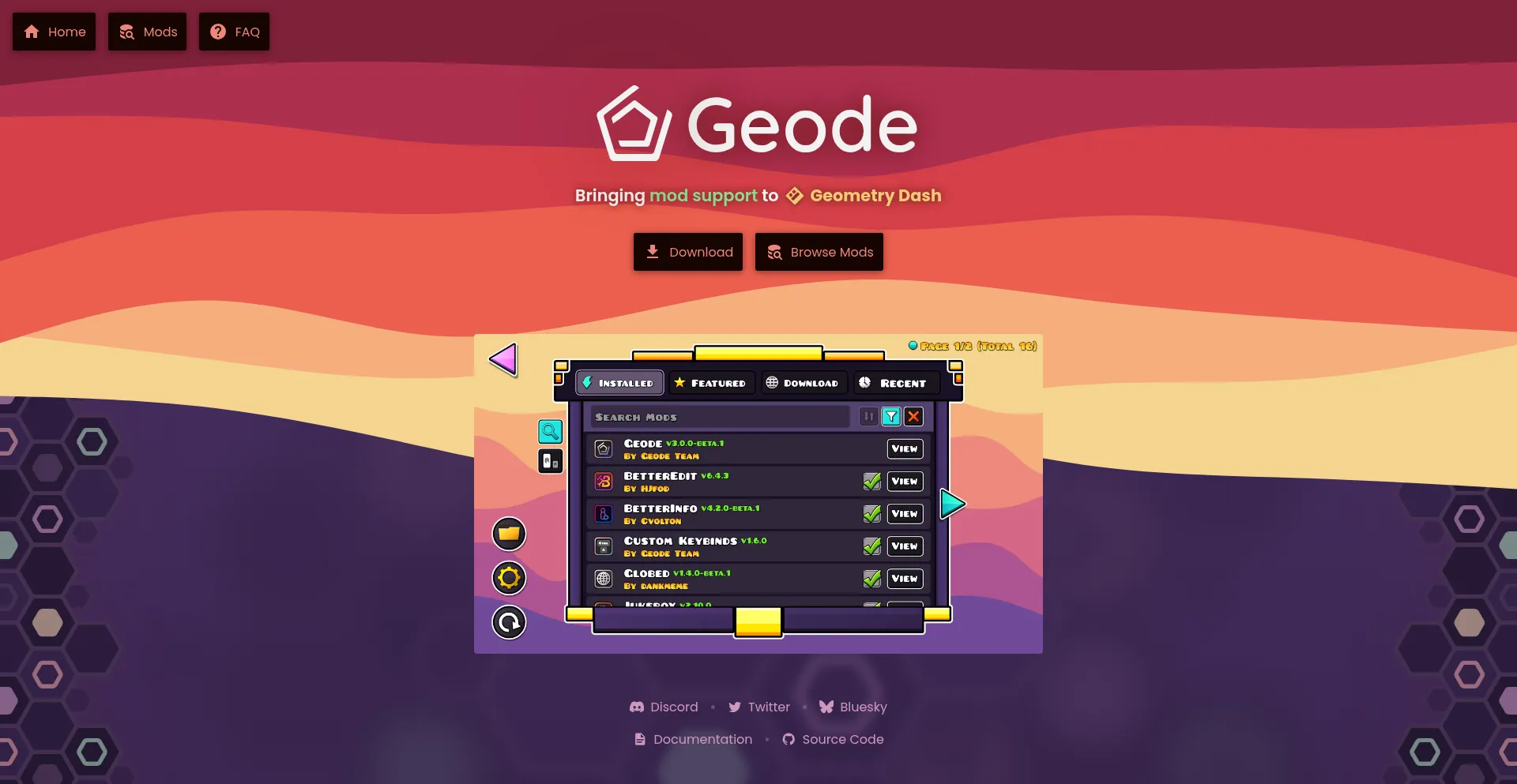Main page for Geode, the most popular mod loader for Geometry Dash