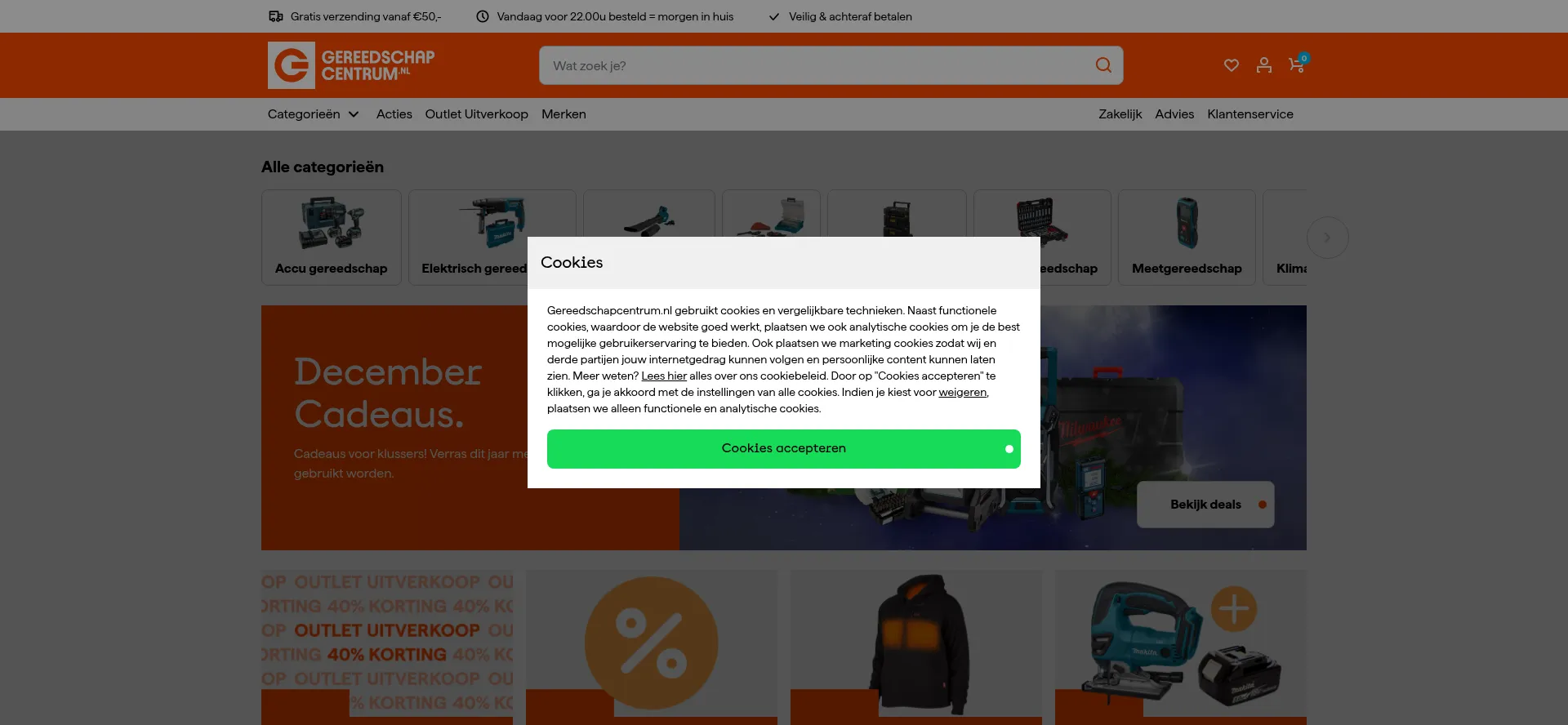 Analysis indicates that gereedschapcentrum.nl operates as an e-commerce platform facilitating online transactions for goods or services. The website implements shopping cart functionality, payment processing systems, and product catalog features typical of commercial retail operations.