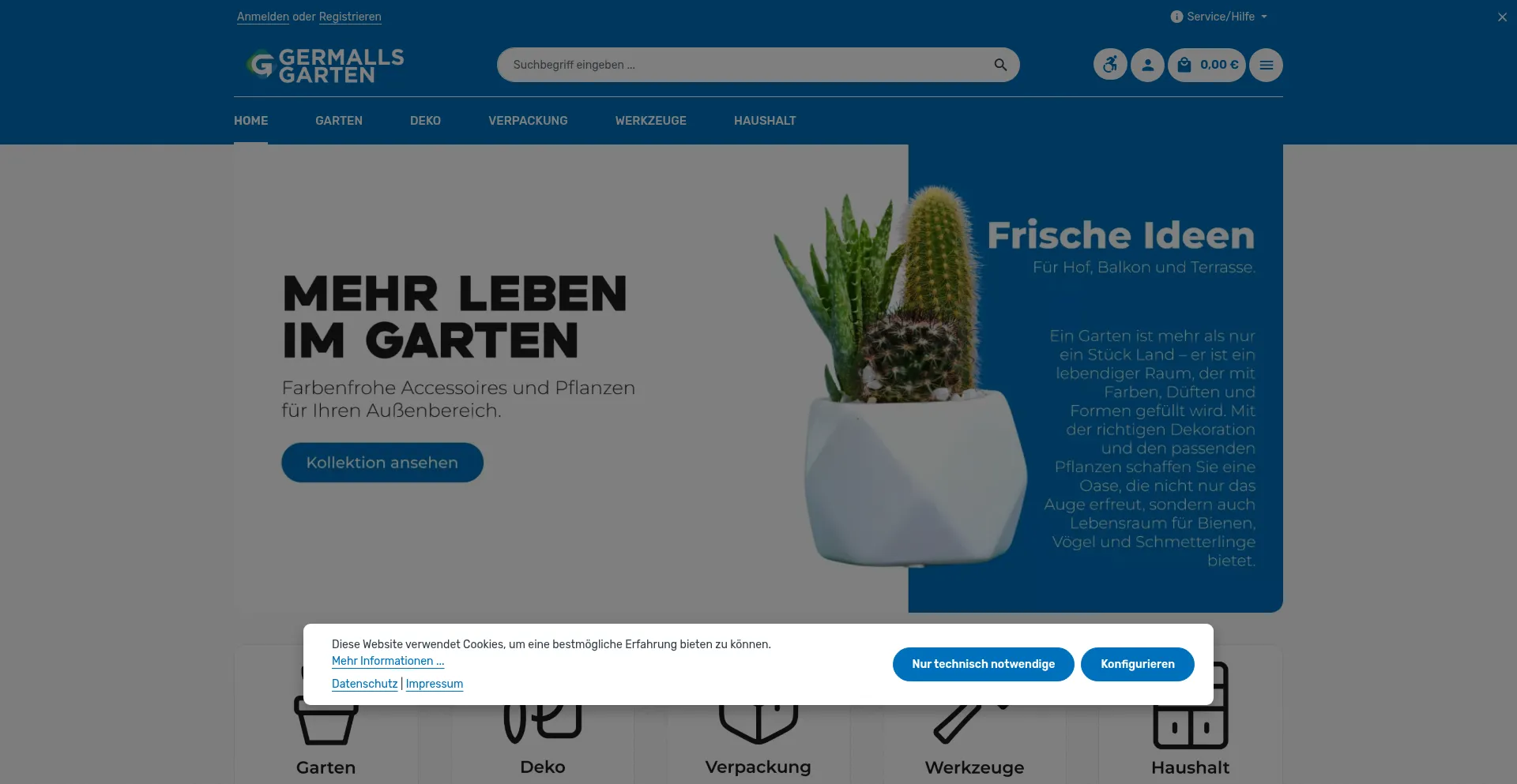Analysis indicates that germalls-garten.de operates as an e-commerce platform facilitating online transactions for goods or services. The website implements shopping cart functionality, payment processing systems, and product catalog features typical of commercial retail operations.