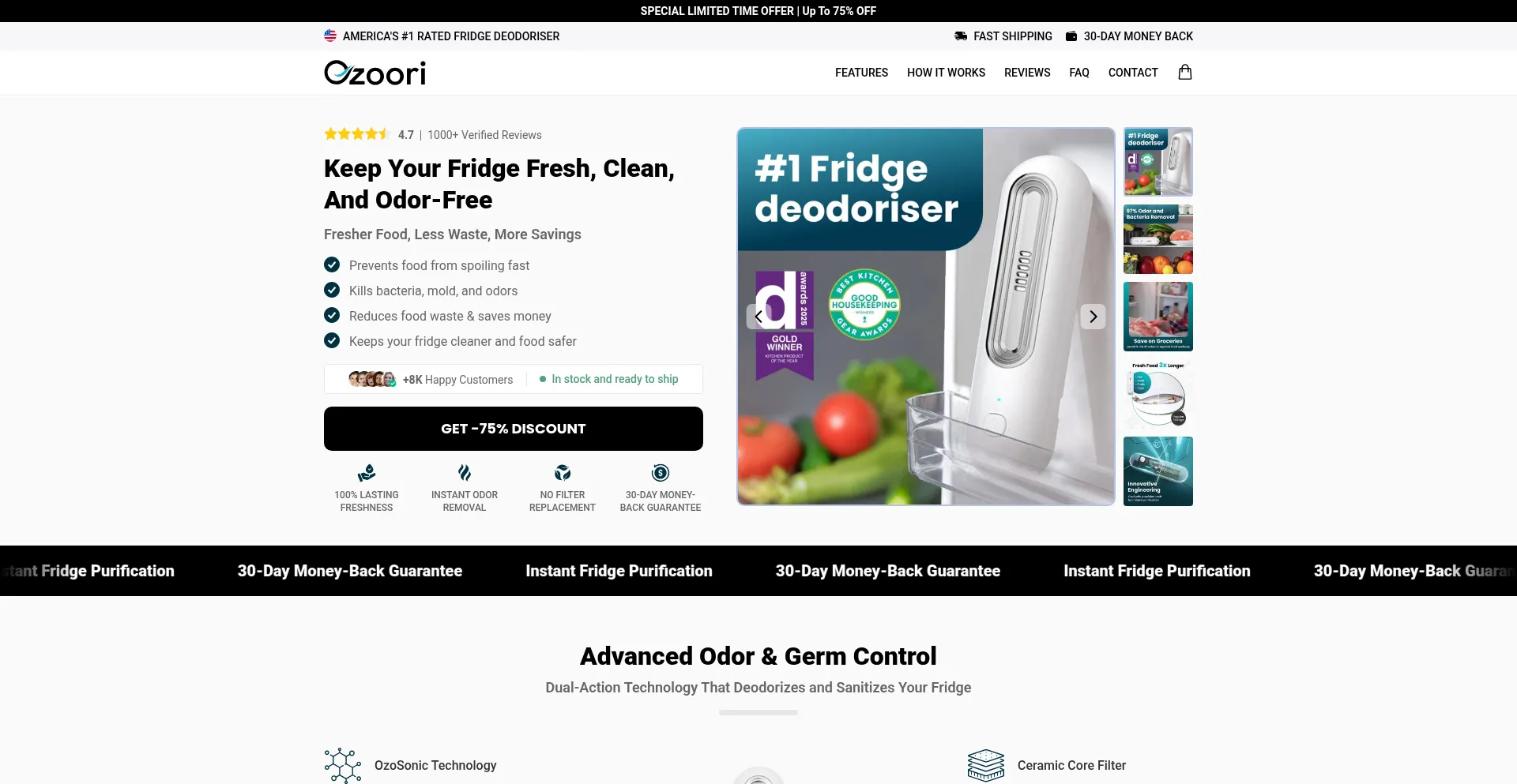 Ozoori - Smart Fridge Freshness & Odor Control Device