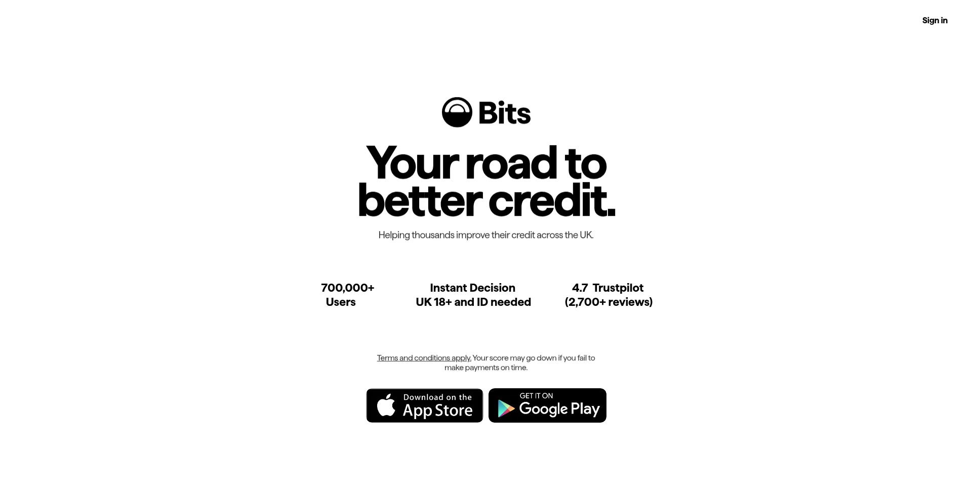 The getbits.app website offers a mobile application for Android devices, indicating expanded platform presence beyond web-based services.