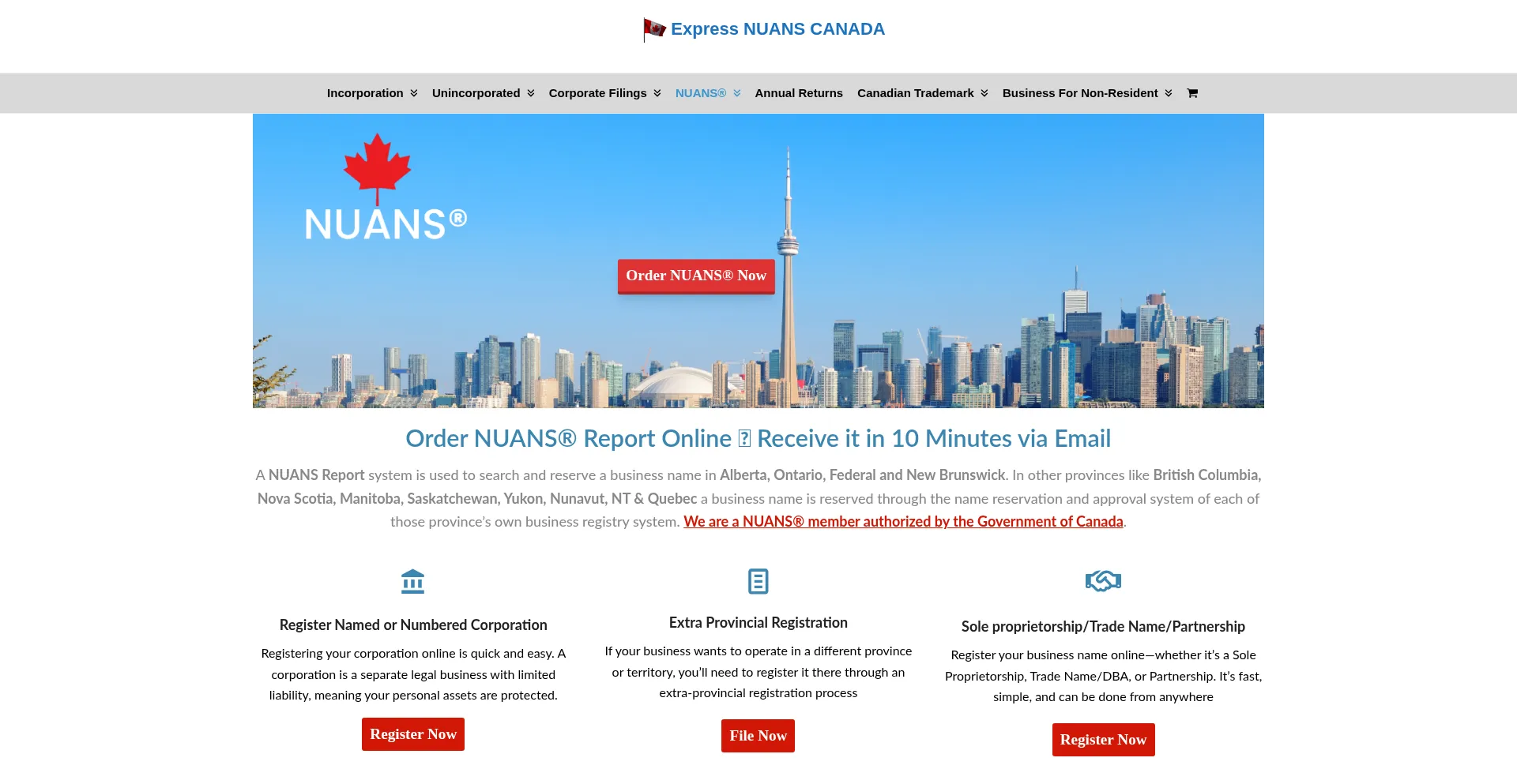 Order a NUANS® report now - get the full report and reserve a business name in Alberta, Ontario, Federal and New Brunswick!