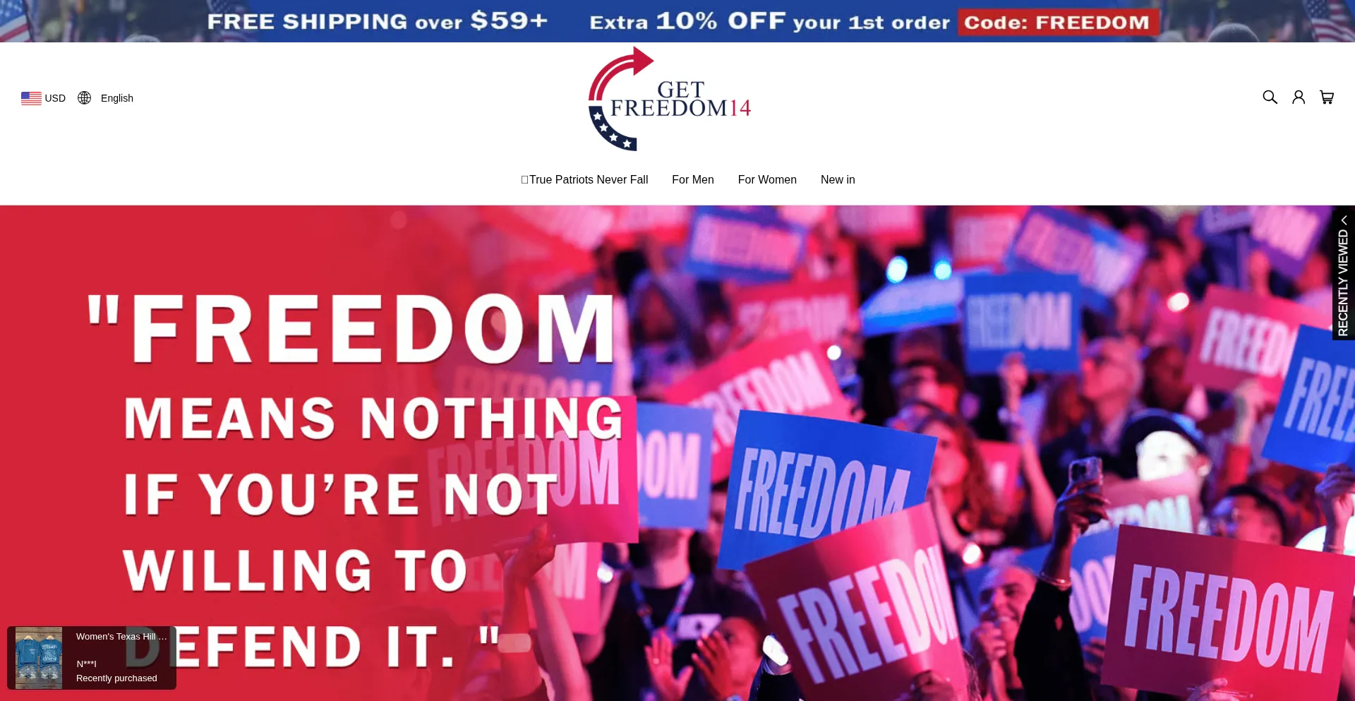 Analysis indicates that getfreedom14.com operates as an e-commerce platform facilitating online transactions for goods or services. The website implements shopping cart functionality, payment processing systems, and product catalog features typical of commercial retail operations.