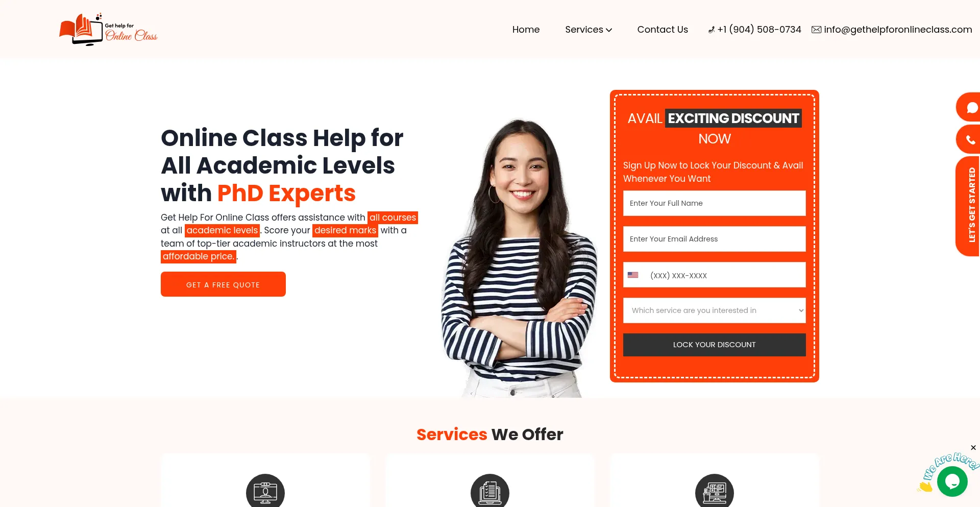 The gethelpforonlineclass.com website implements data collection forms requesting personal information including names, email addresses, phone numbers, or other sensitive details. Users should verify the legitimacy of it and review privacy policies before submitting personal data.