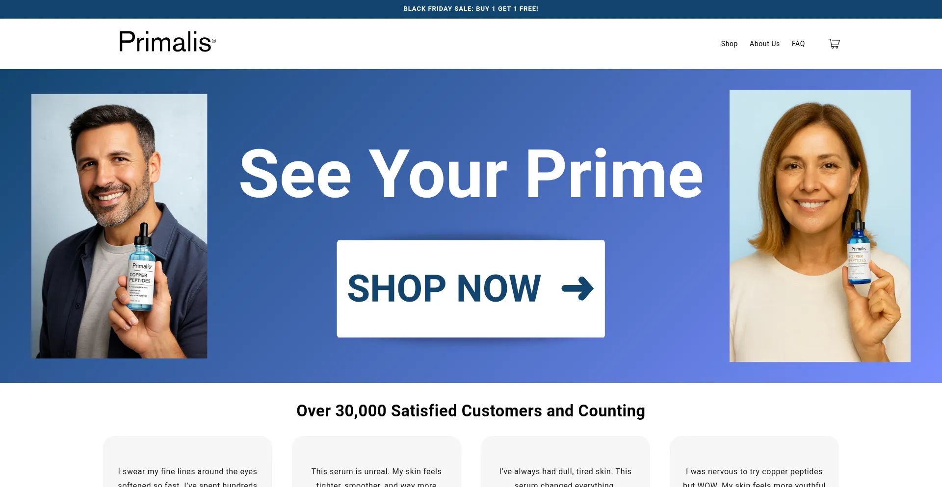 Our analyzer determines that website getprimalis.com is using Shopify CMS. Shopify is a popular e-commerce platform, powering around 4.4% of websites globally.
