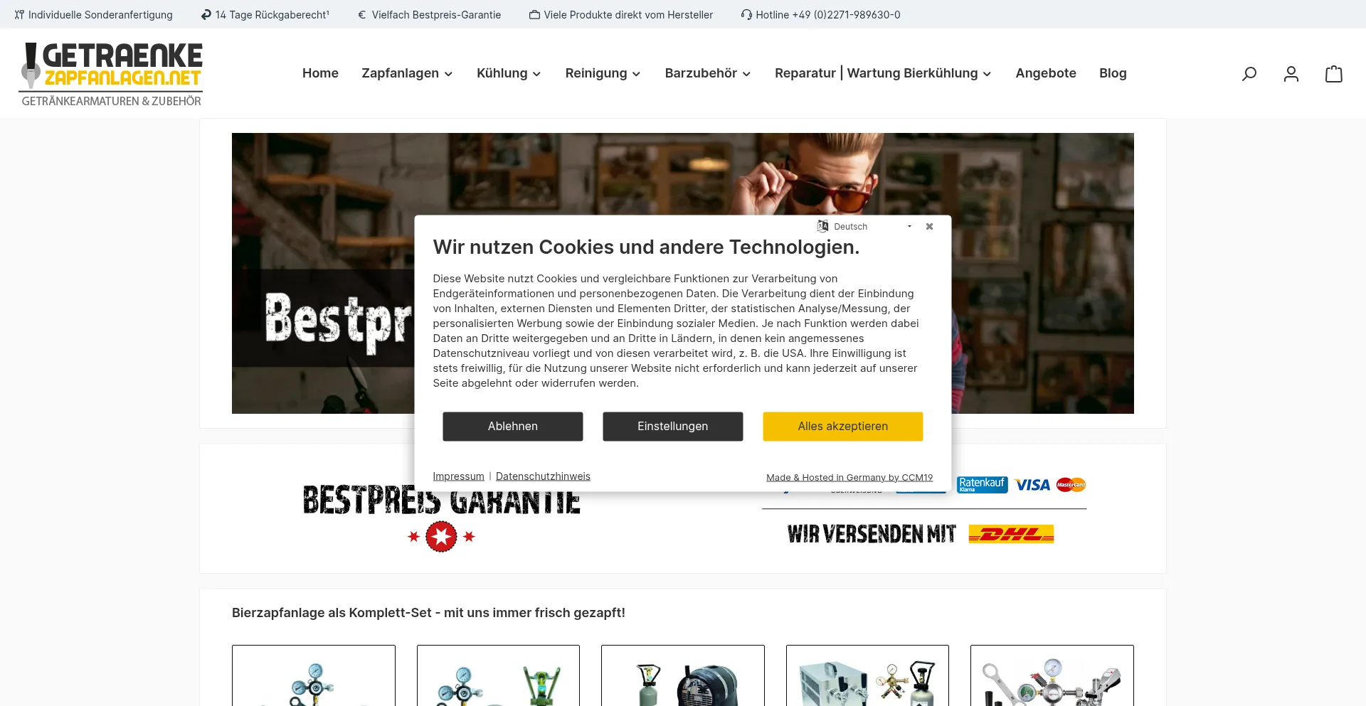 Analysis indicates that getraenkezapfanlagen.net operates as an e-commerce platform facilitating online transactions for goods or services. The website implements shopping cart functionality, payment processing systems, and product catalog features typical of commercial retail operations.