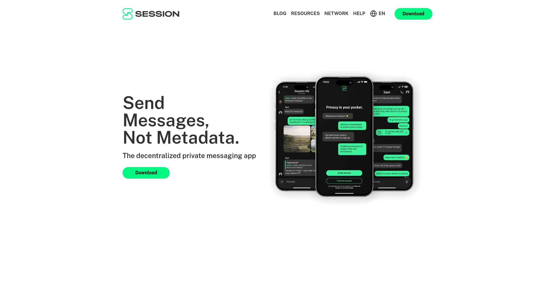 Session is a private messenger that aims to remove any chance of metadata collection by routing all messages through an onion routing network.
