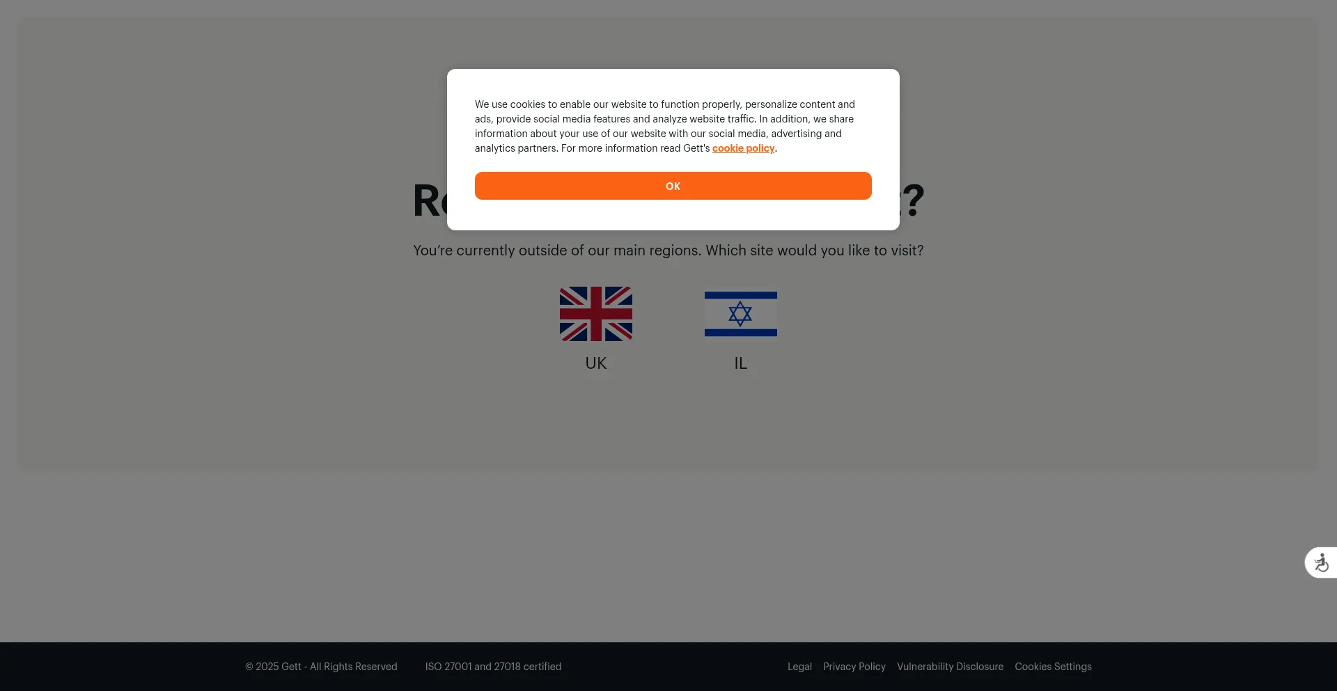 The website implements cookie consent mechanisms in compliance with privacy regulations such as GDPR or CCPA. This demonstrates that gett.com adheres to data protection standards and provides users with control over personal data collection practices.