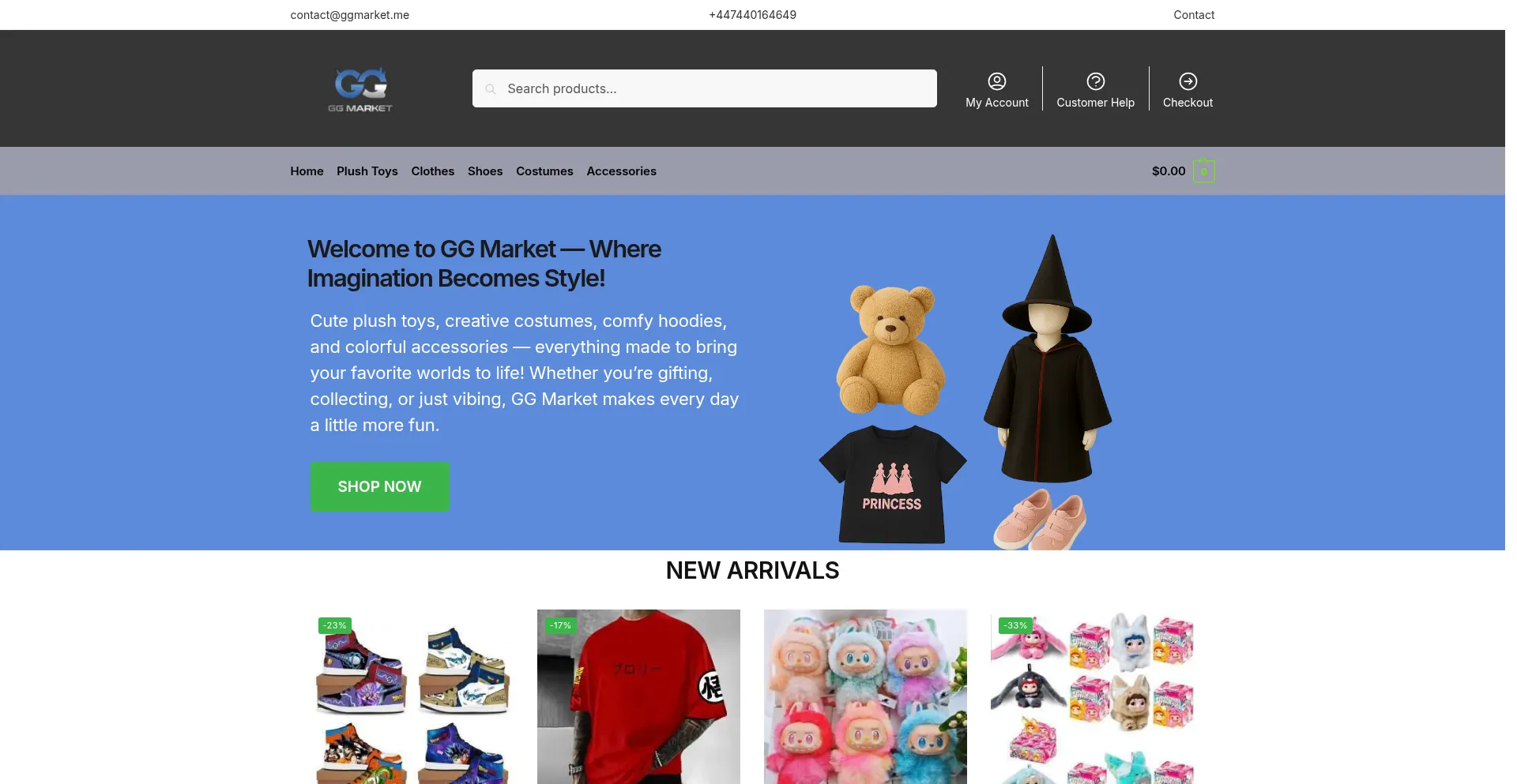 Welcome to GG Market β€” Where Imagination Becomes Style! Cute plush toys, creative costumes, comfy hoodies, and colorful accessories β€” everything made to bring