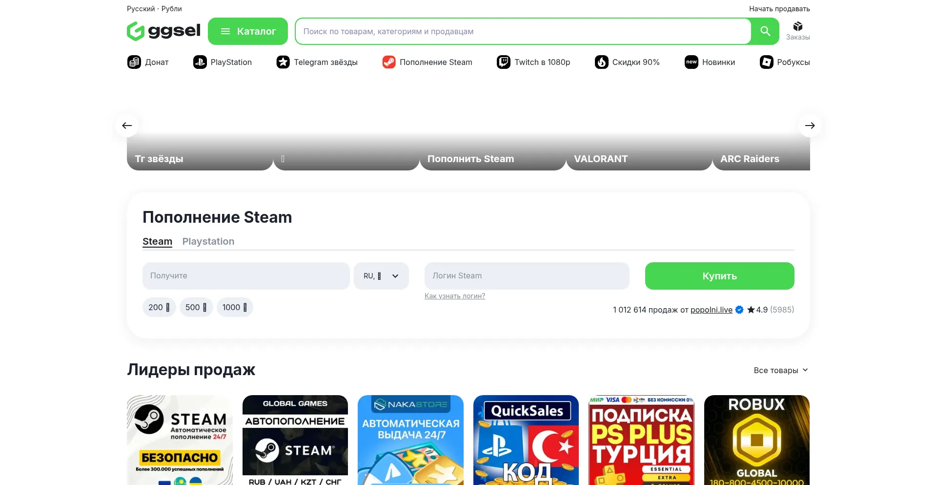 ggsel – Маркетплейс цифровых товаров: игры, ключи, гифты, ПО и пополнение баланса