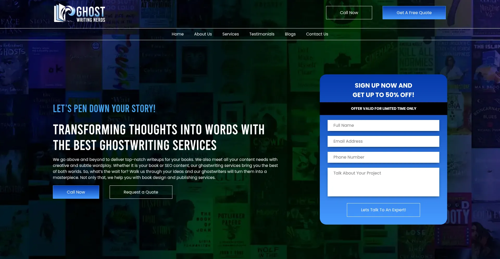 The ghostwritingnerds.com website implements data collection forms that may request personal information including names, email addresses, phone numbers, or other sensitive details. Users should verify the legitimacy of it and review privacy policies before submitting personal data.