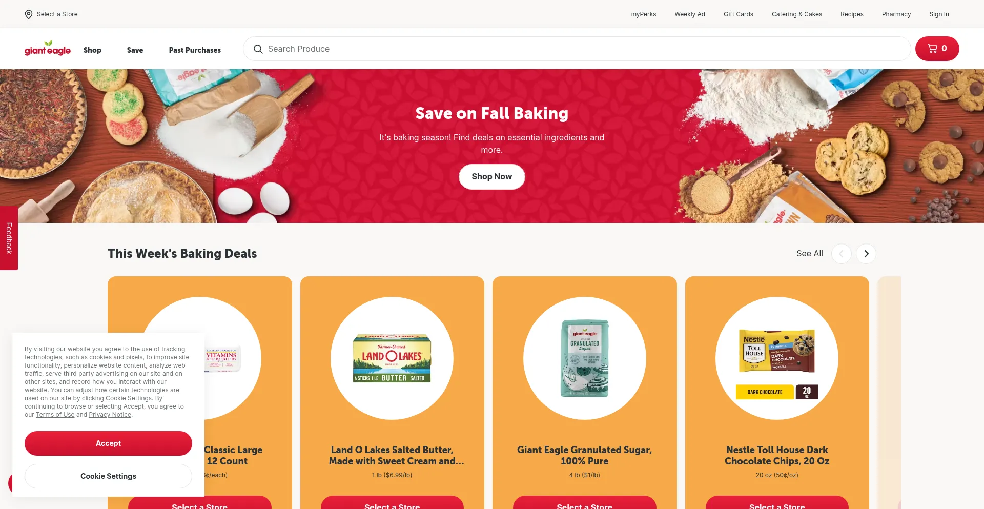 The website implements cookie consent mechanisms in compliance with privacy regulations such as GDPR or CCPA. This demonstrates that gianteagle.com adheres to data protection standards and provides users with control over personal data collection practices.