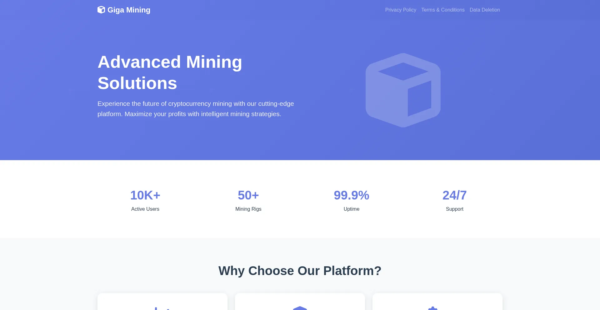 The gigamine.cloud probably offers cloud mining services or cryptocurrency mining investments. Some platforms provide legitimate mining rental services, while others may use fake mining dashboards to display virtual earnings that cannot be withdrawn.