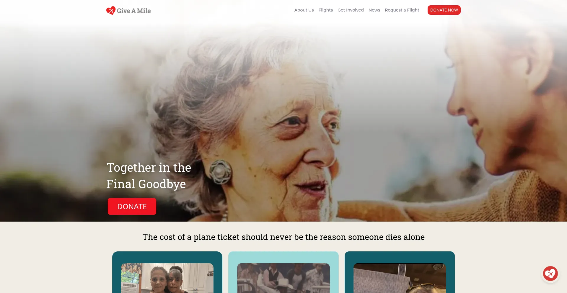 Give A Mile - The cost of a plane ticket should never be the reason someone dies alone. Every donation helps people reach their loved ones.
