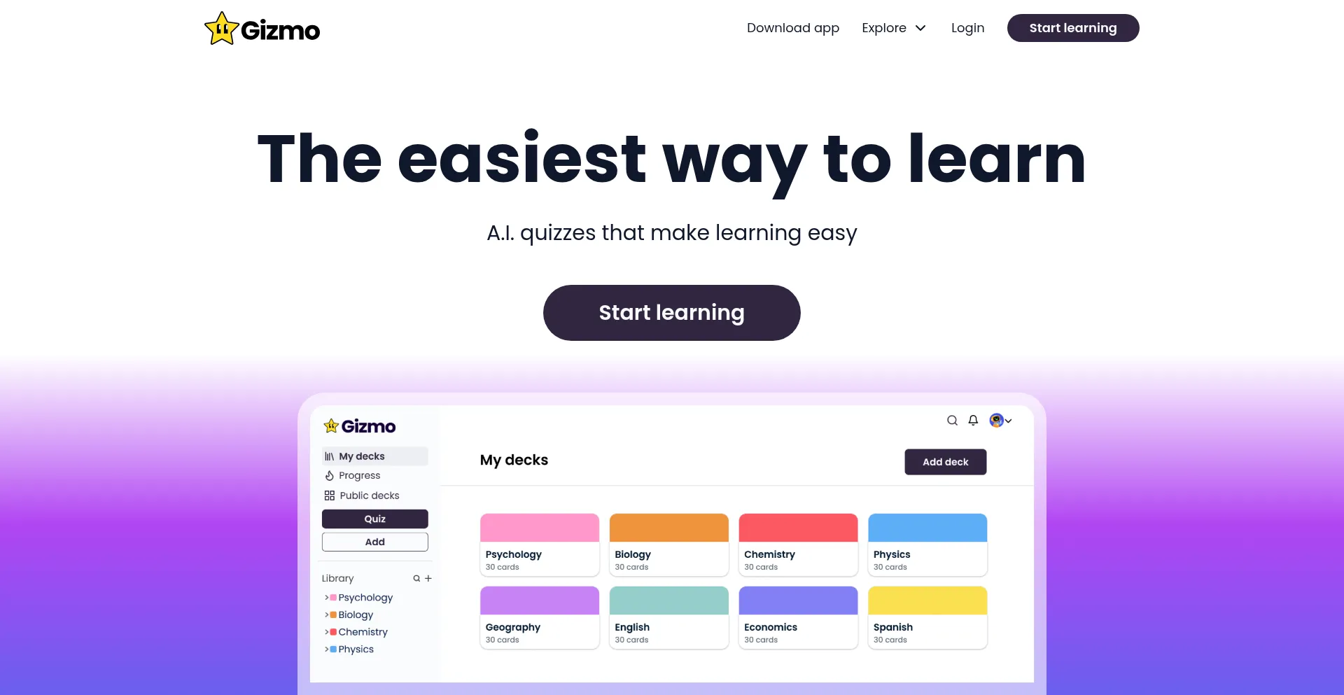 Gizmo (formerly called Save All) uses AI to help you remember everything you learn. Input in what you are learning and our AI turns it into AI flashcards that you can quiz in a ...