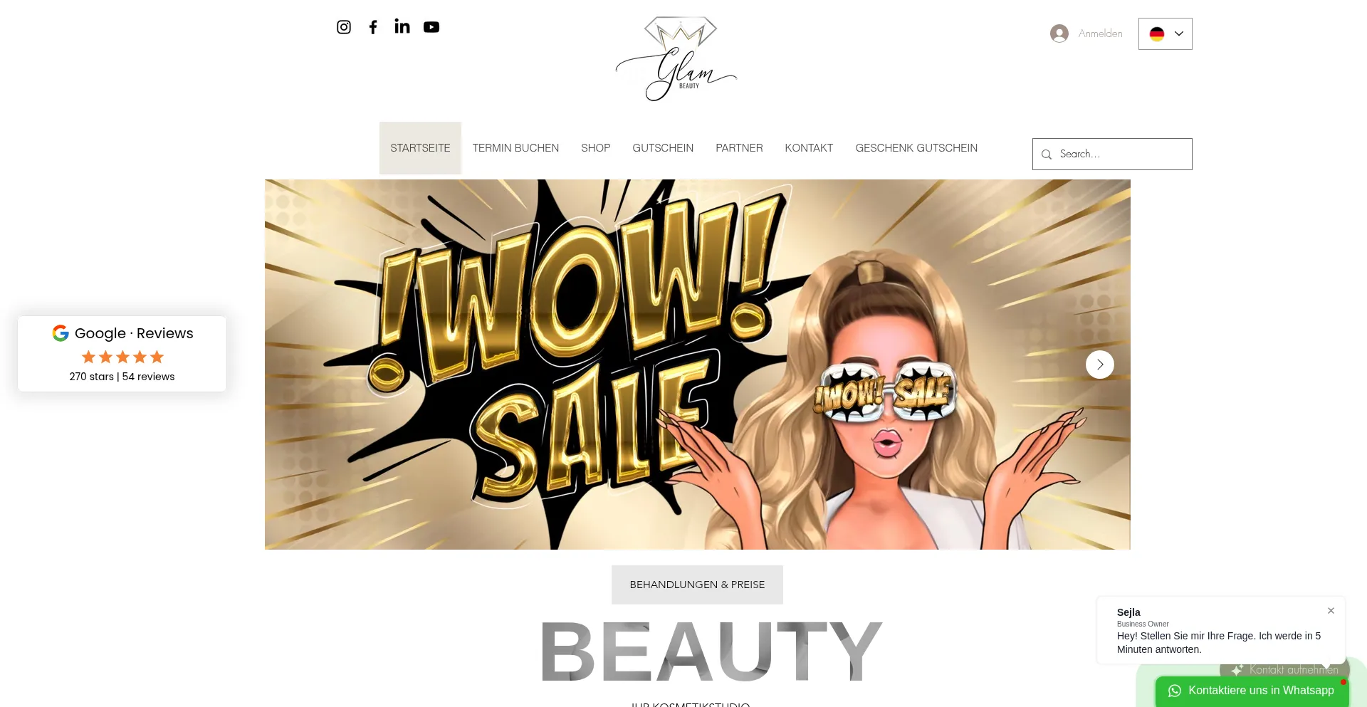 The glam-beauty.ch website contains incomplete elements including placeholder content, unfinished features, or development artifacts, indicating ongoing construction or maintenance. This may reflect inadequate quality assurance processes or premature deployment, potentially affecting site reliability and user experience.