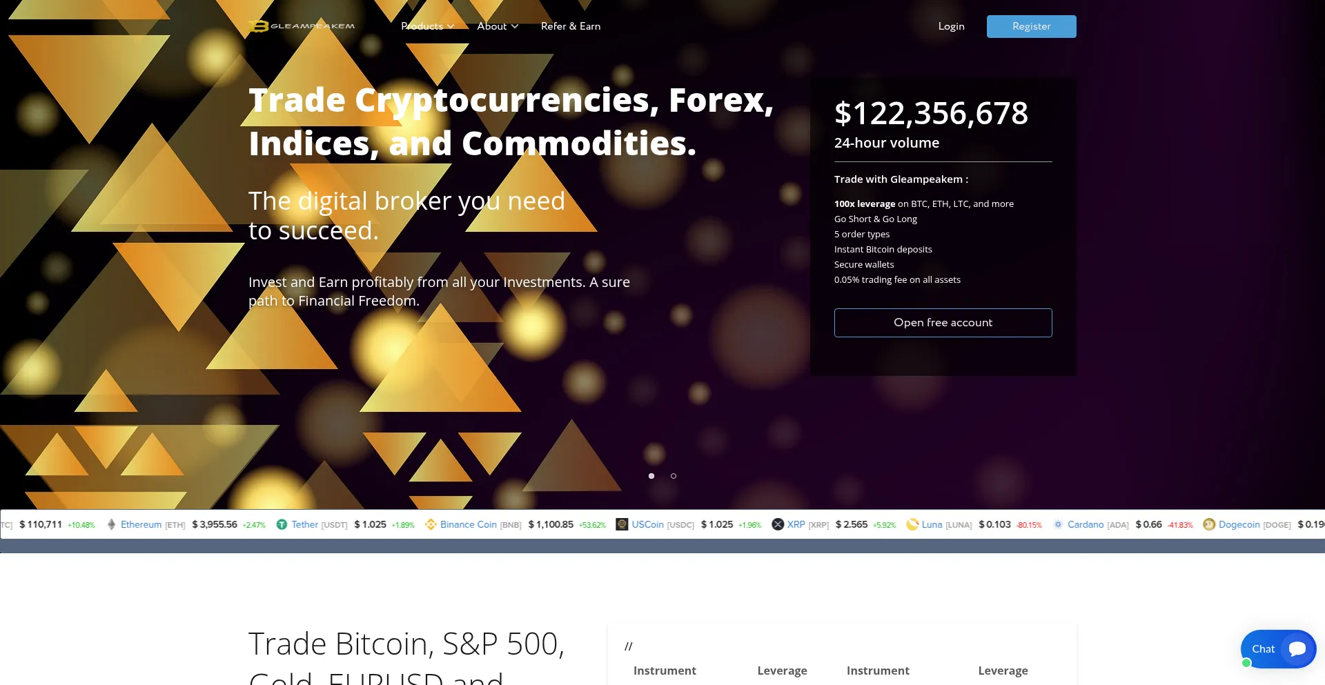 Gleampeakem - Bitcoin | Binary | CFD Trading - 100x Leverage