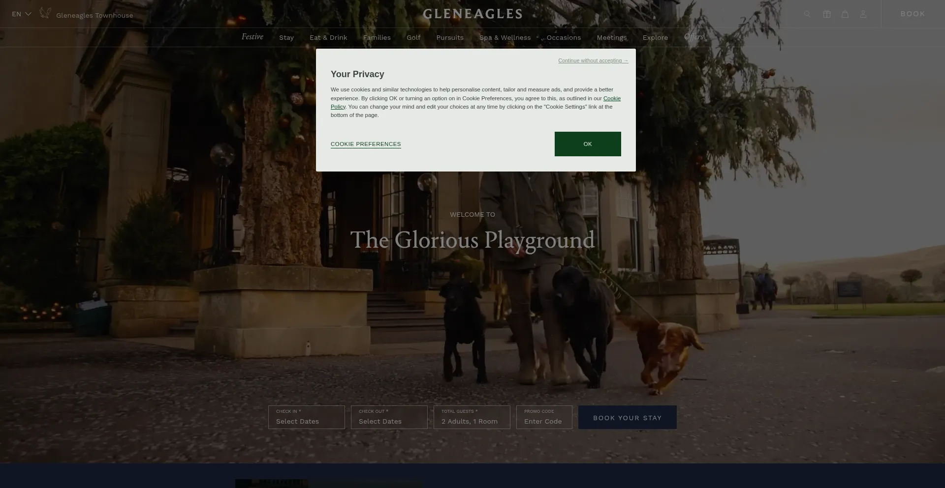 The website implements cookie consent mechanisms in compliance with privacy regulations such as GDPR or CCPA. This demonstrates that gleneagles.com adheres to data protection standards and provides users with control over personal data collection practices.