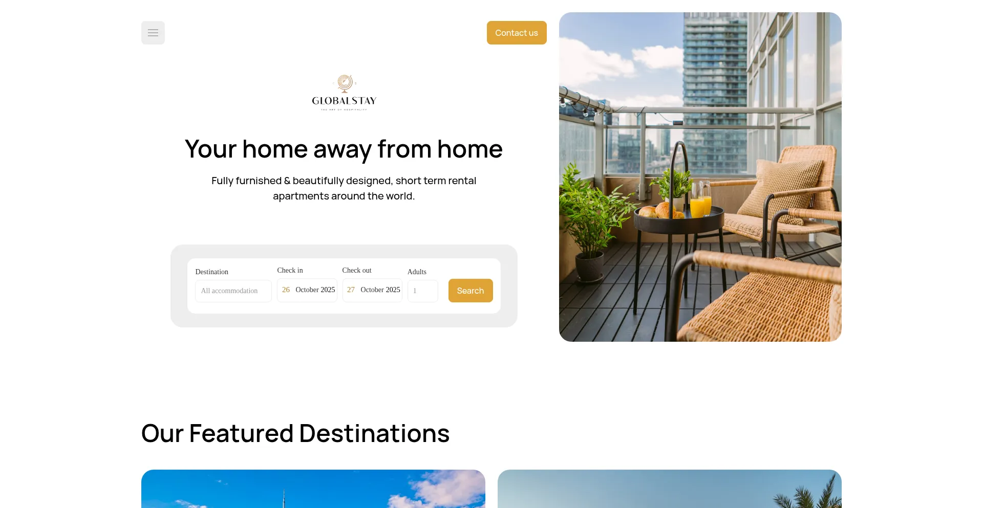 Global Stay — Your Home Away From Home. Fully Furnished & Beautifully Designed, Short Term Rental Apartments Around The World.