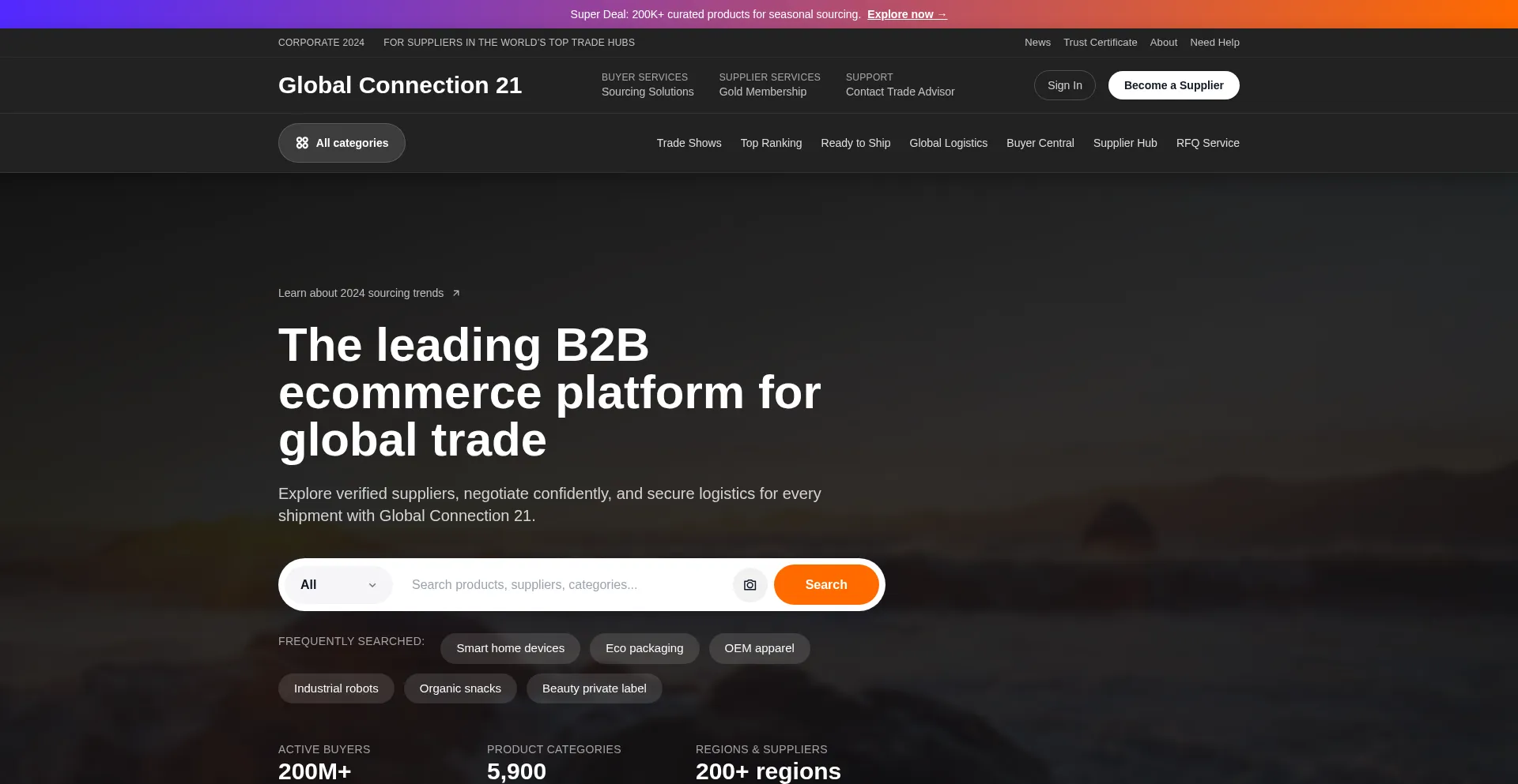 Global Connection 21 is the trusted marketplace connecting buyers and suppliers with curated sourcing experiences.