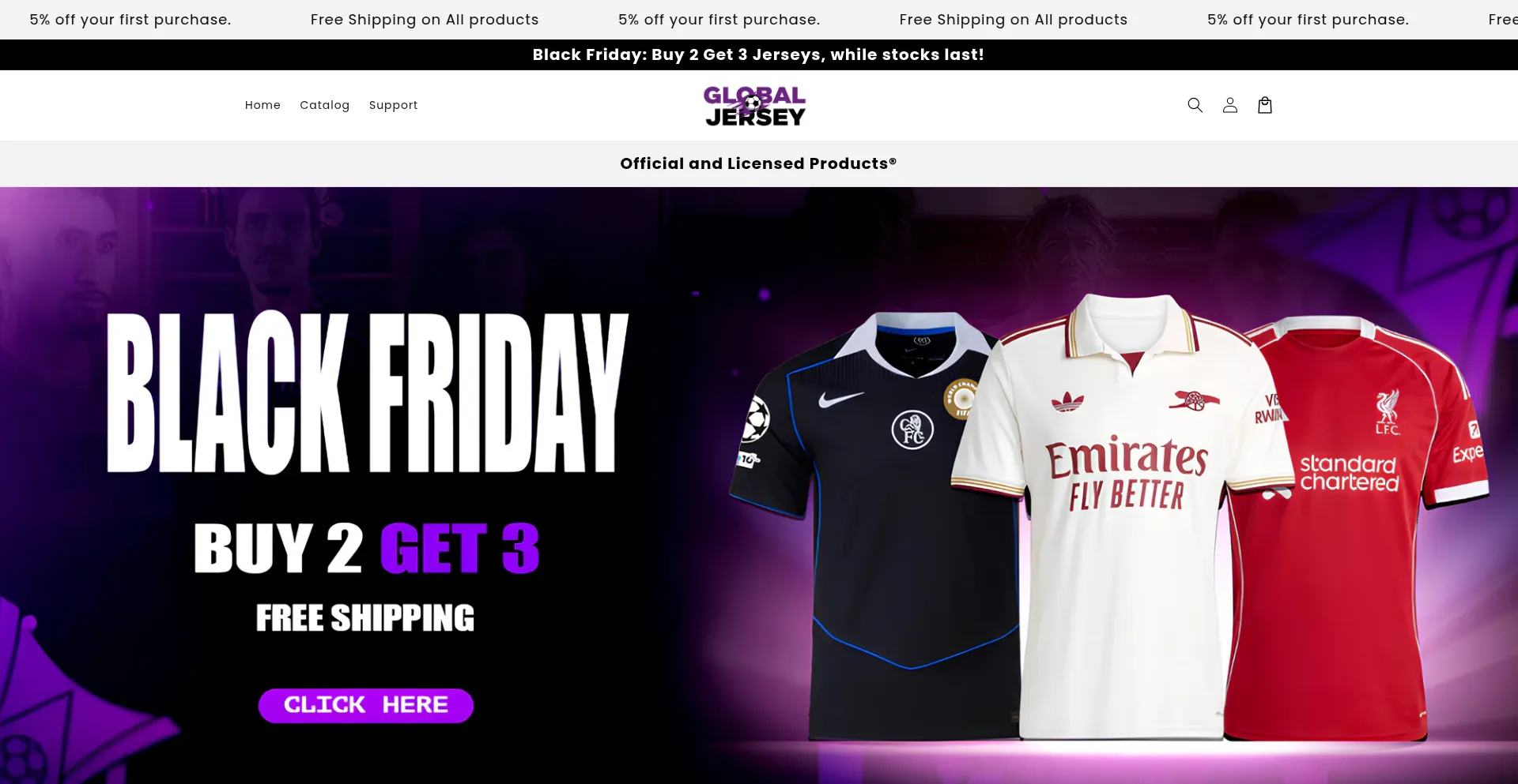 Globaljerseys.store operates as a suspicious website with multiple red flags that compromise its trustworthiness and user safety. The platform exhibits concerning characteristics including misleading information, questionable operational practices, or potential malware distribution that poses significant risks to visitors.