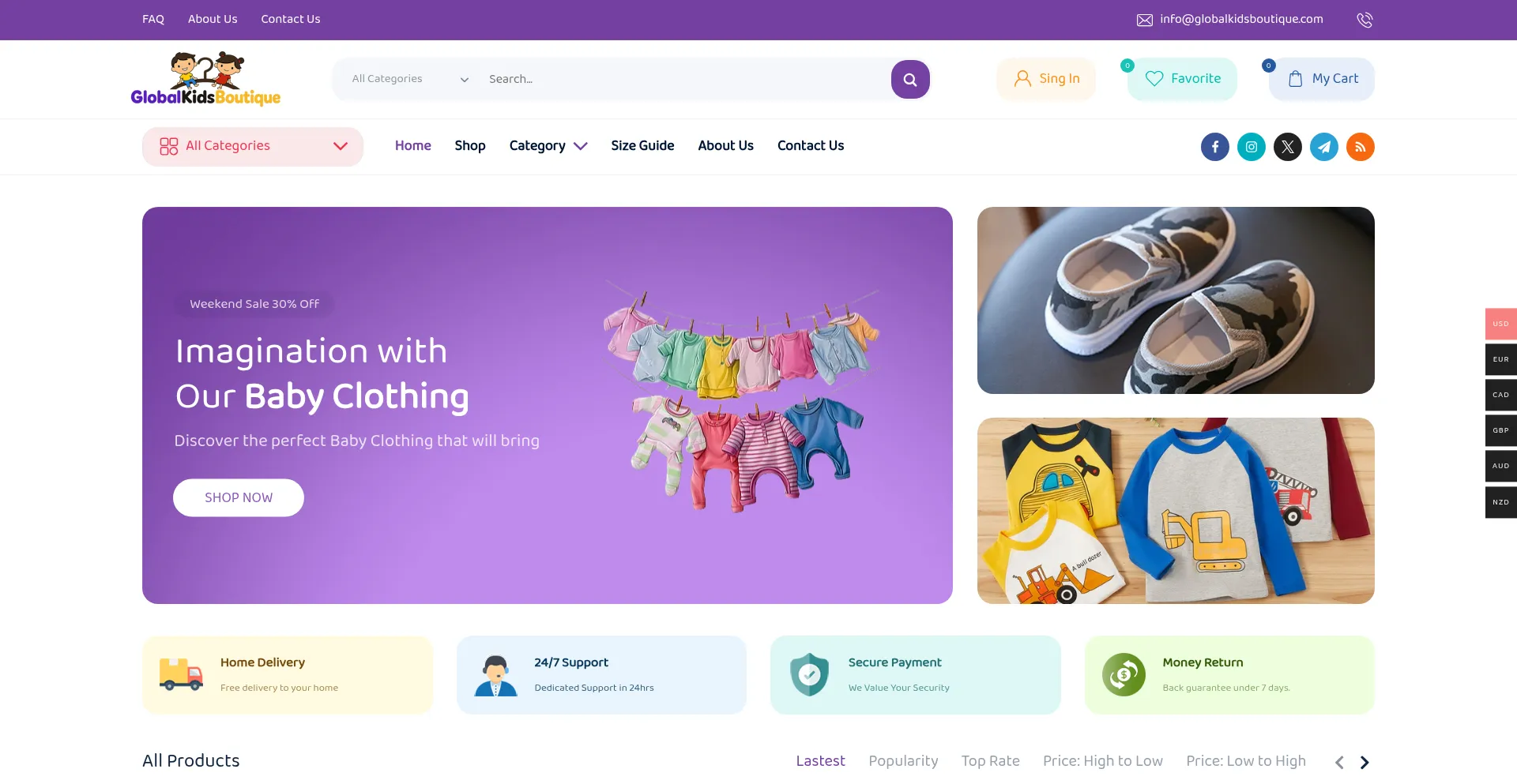 Analysis indicates that globalkidsboutique.com operates as an e-commerce platform facilitating online transactions for goods or services. The website implements shopping cart functionality, payment processing systems, and product catalog features typical of commercial retail operations.