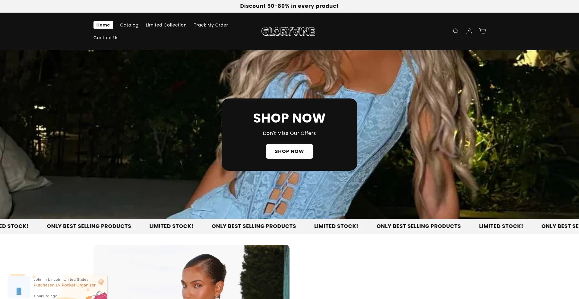 Gloryvine.com displays patterns commonly associated with problematic e-commerce sites: social media promotion, payment and data collection, and reported delivery issues. These patterns suggest potential risks for customers, though individual experiences may vary.