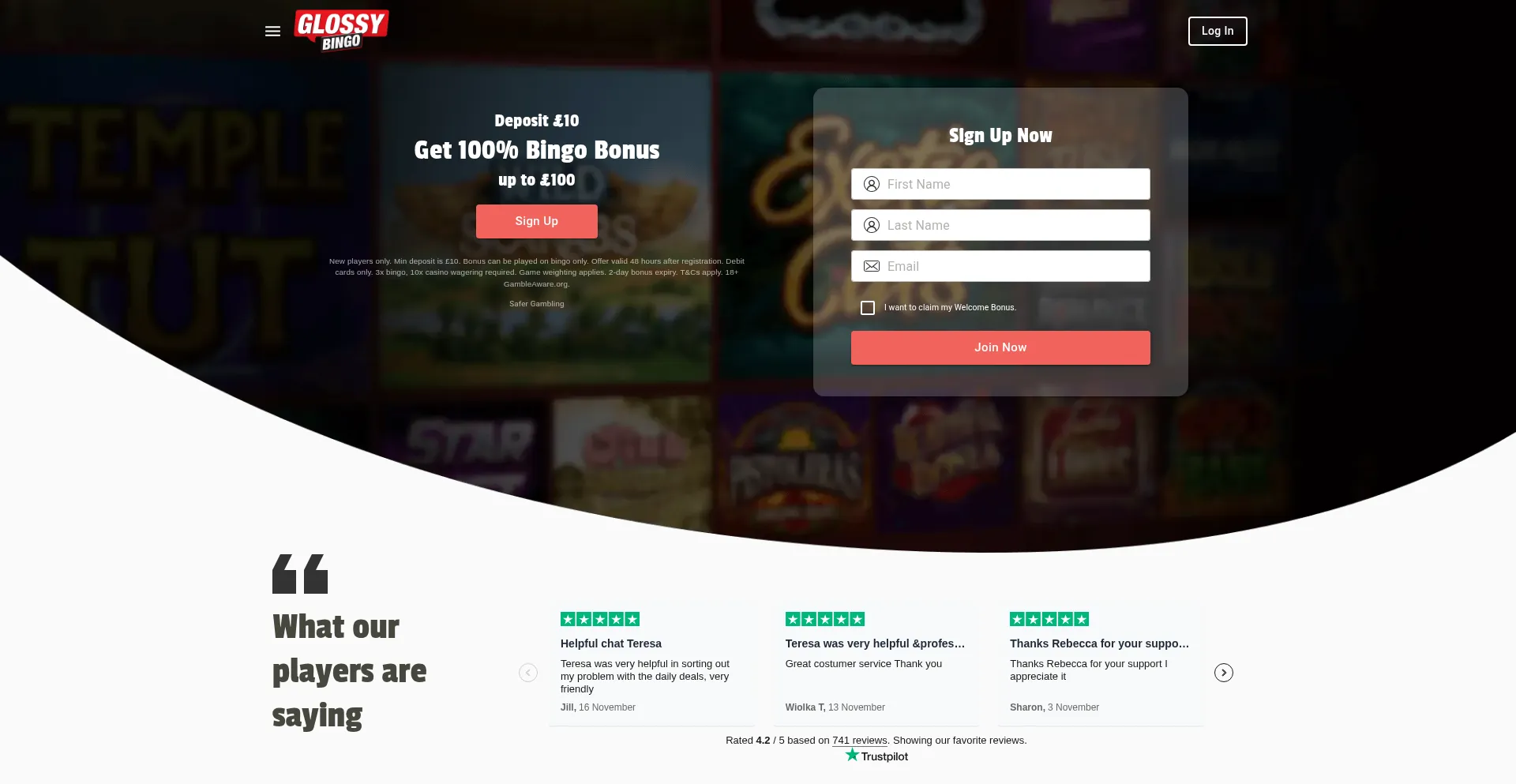 glossybingo.com has a good Trustpilot score (4.2) based on 741 reviews, indicating a high level of trust from customers. It is a good sign of legitimacy!