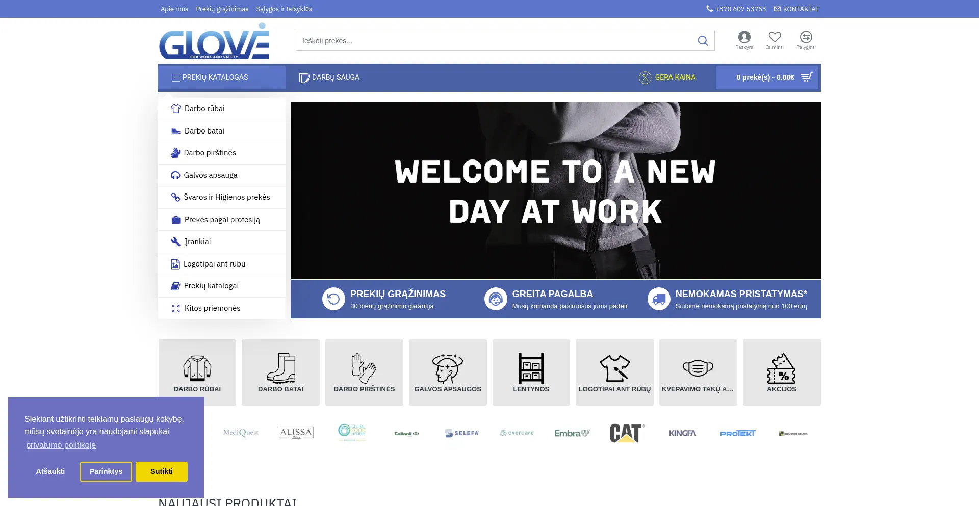 The website implements cookie consent mechanisms in compliance with privacy regulations such as GDPR or CCPA. This demonstrates that glove.lt adheres to data protection standards and provides users with control over personal data collection practices.
