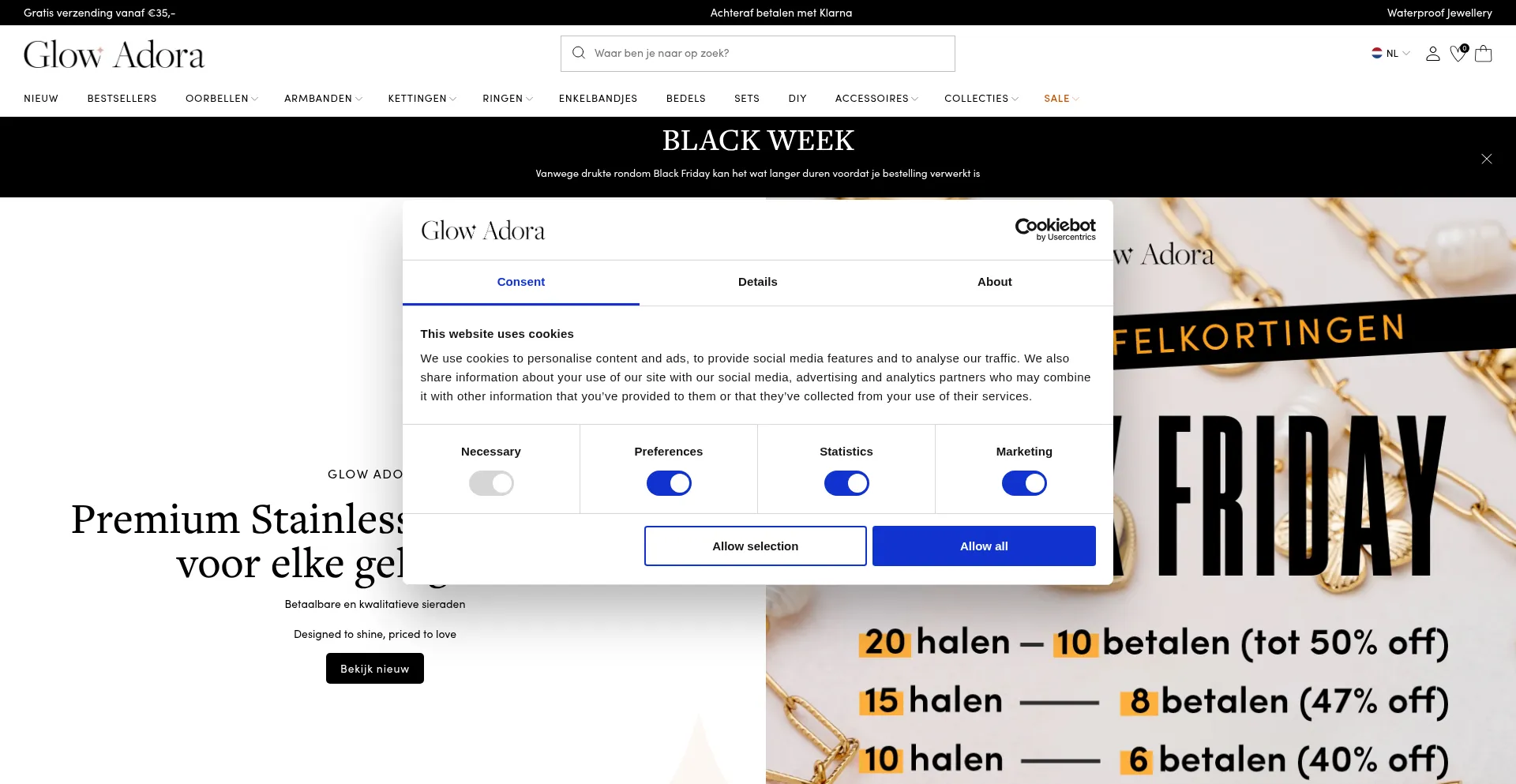 The website implements cookie consent mechanisms in compliance with privacy regulations such as GDPR or CCPA. This demonstrates that glowadora.nl adheres to data protection standards and provides users with control over personal data collection practices.