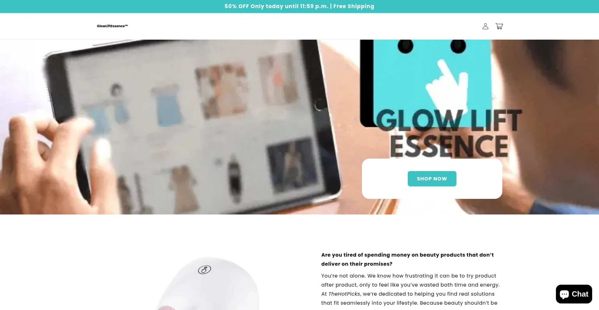 Analysis indicates that glowliftessence.com operates as an e-commerce platform facilitating online transactions for goods or services. The website implements shopping cart functionality, payment processing systems, and product catalog features typical of commercial retail operations.