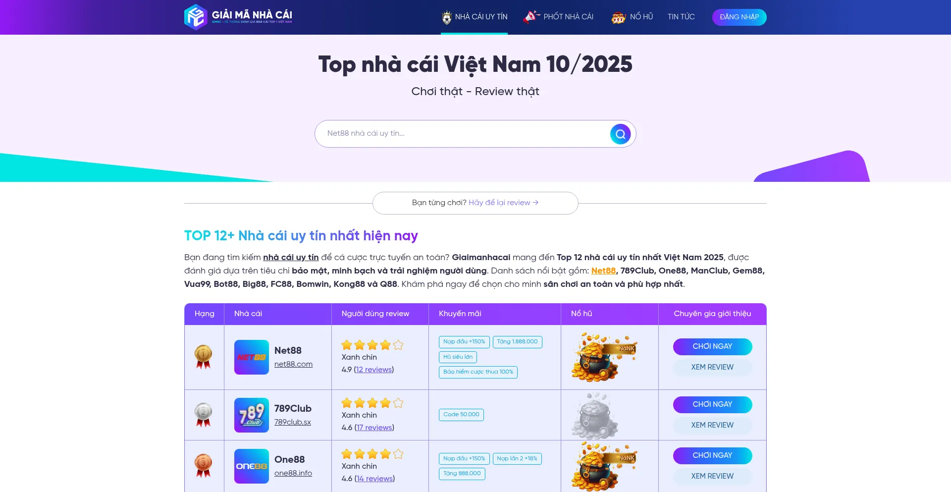 TOP 12 Nhà Cái Uy Tín Nhất - Top Các Nhà Cái Việt Nam 2025