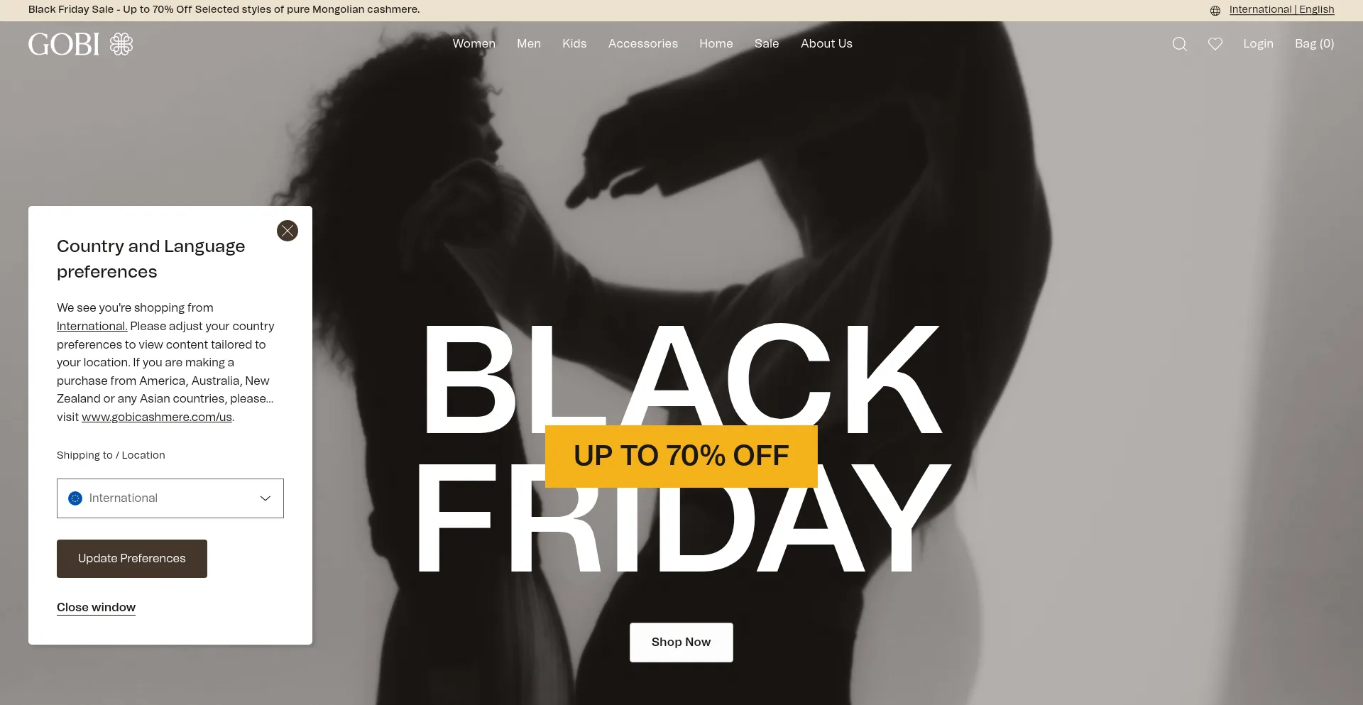 Our analyzer determines that website gobicashmere.com is using Shopify CMS. Shopify is a popular e-commerce platform, powering around 4.4% of websites globally.