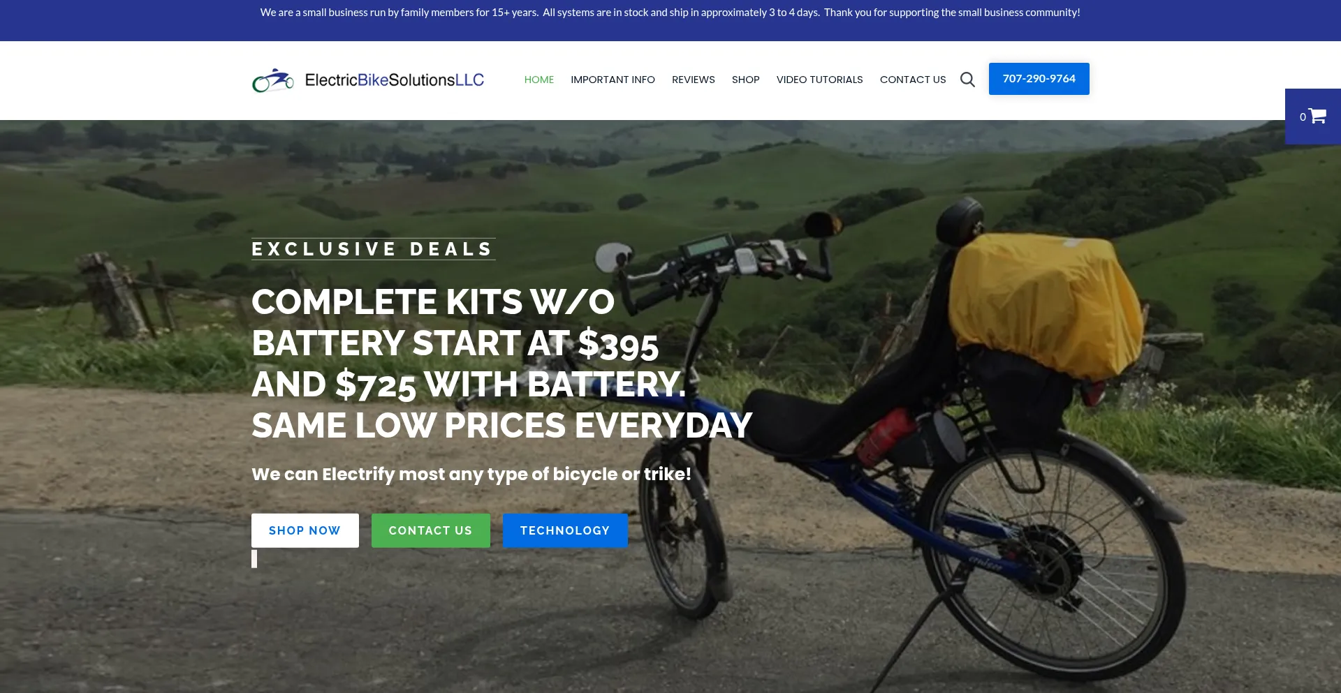 Electric Bike Kit (s): durable and powerful 36V to 52V 1300 peak watts (750 watts nominal) in 16", 20", 24" 26", 27.5", and 700c wheel sizes. (707) 439-3179