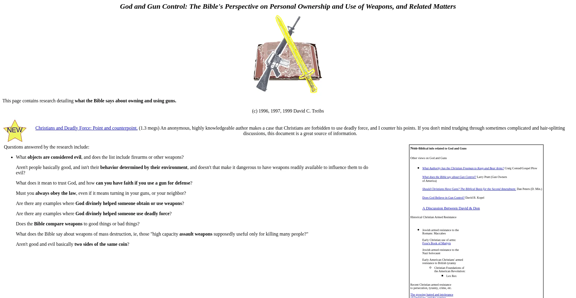 God and Gun Control: The Bible's Perspective on Personal Ownership and use of Weapons, and Related Matters.
