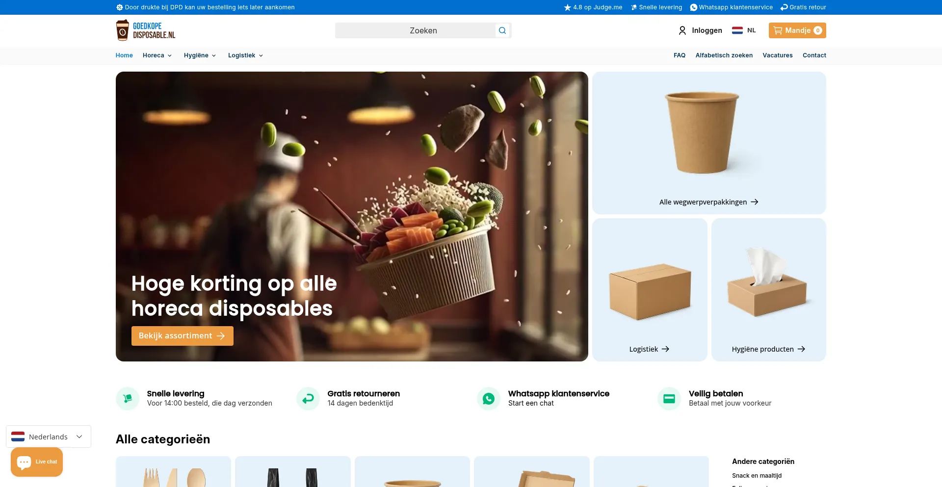 Analysis indicates that goedkopedisposable.nl operates as an e-commerce platform facilitating online transactions for goods or services. The website implements shopping cart functionality, payment processing systems, and product catalog features typical of commercial retail operations.