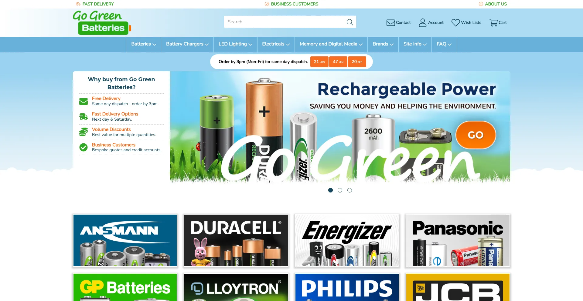 Specialists in rechargeable and high performance batteries, chargers and other household batteries