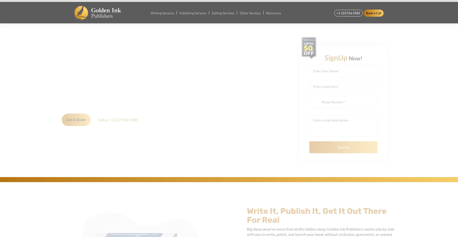 The goldeninkpublishers.com website implements data collection forms requesting personal information including names, email addresses, phone numbers, or other sensitive details. Users should verify the legitimacy of it and review privacy policies before submitting personal data.