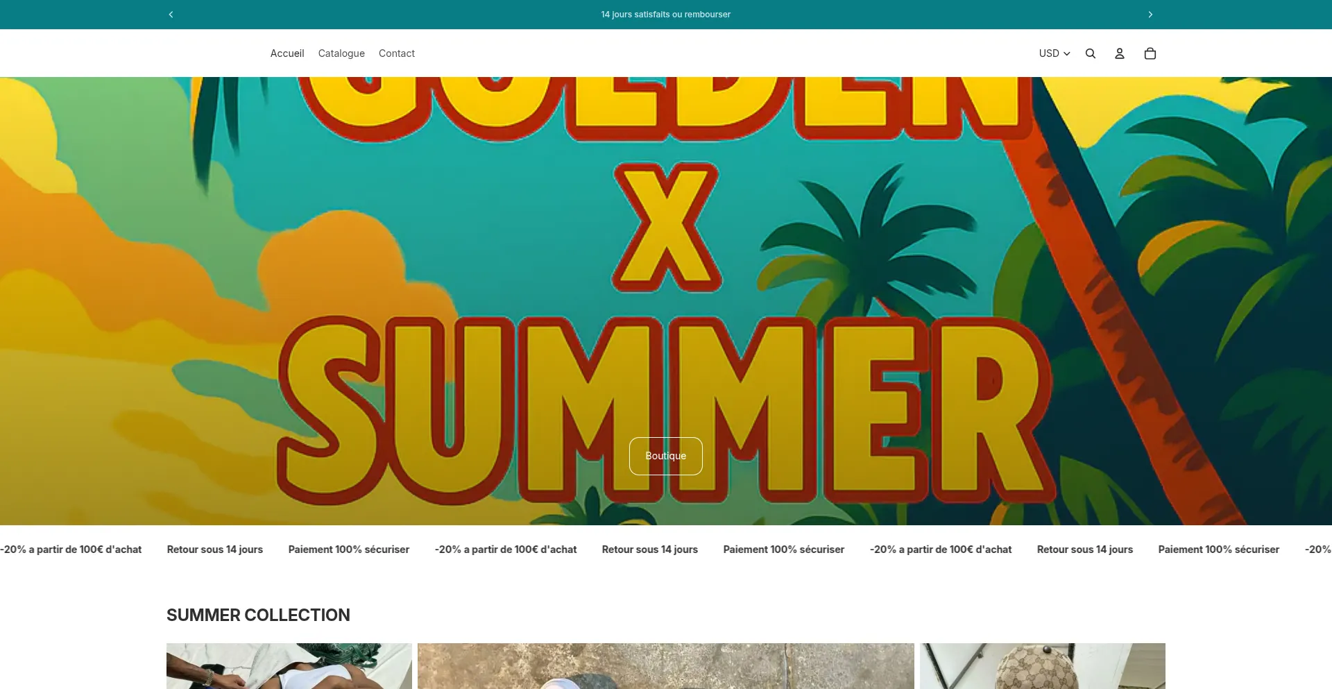 Analysis indicates that goldensummer.fr operates as an e-commerce platform facilitating online transactions for goods or services. The website implements shopping cart functionality, payment processing systems, and product catalog features typical of commercial retail operations.