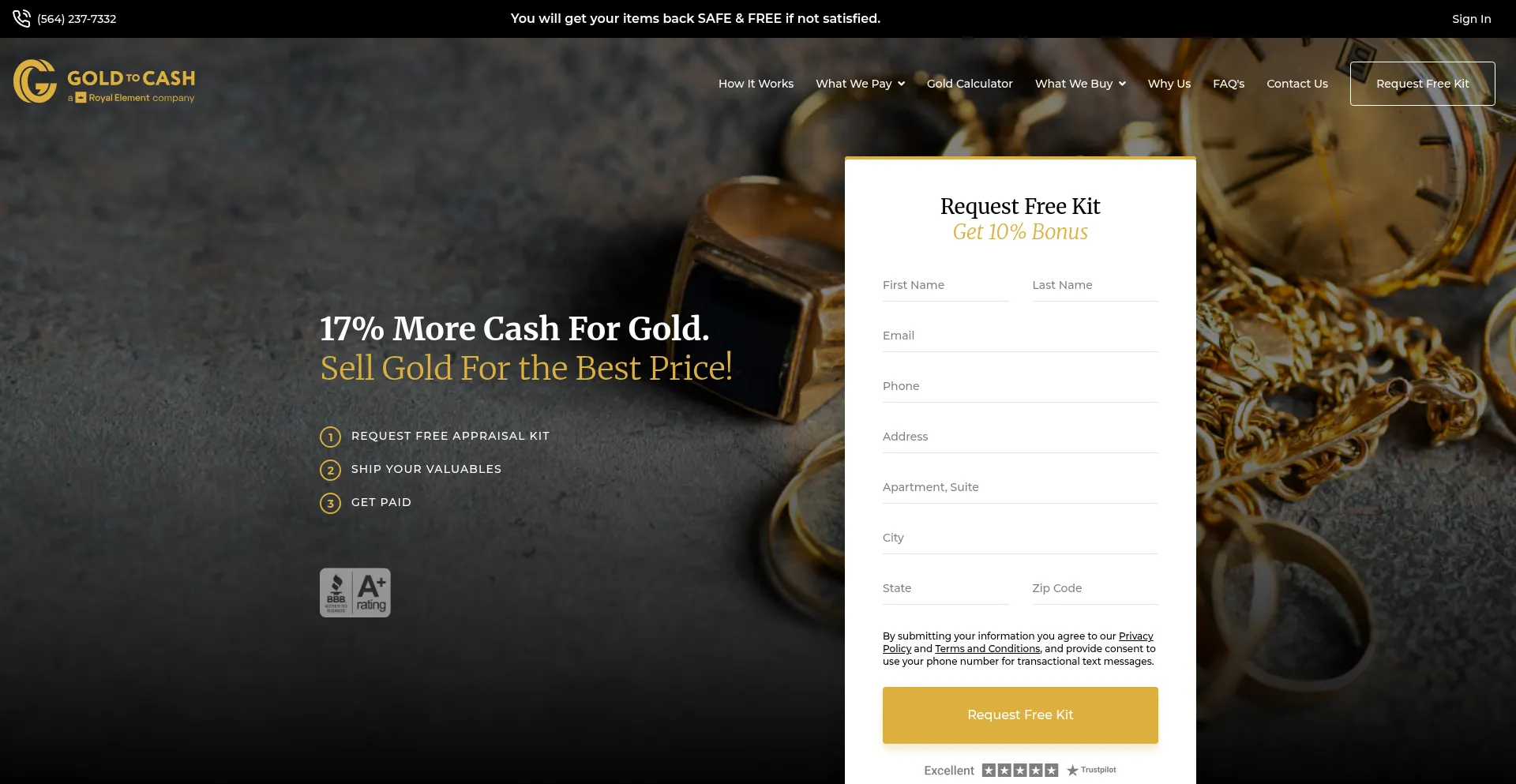 Gold to Cash is one of the top online gold buyers. Sell your gold and jewelry and get the most cash for gold today!